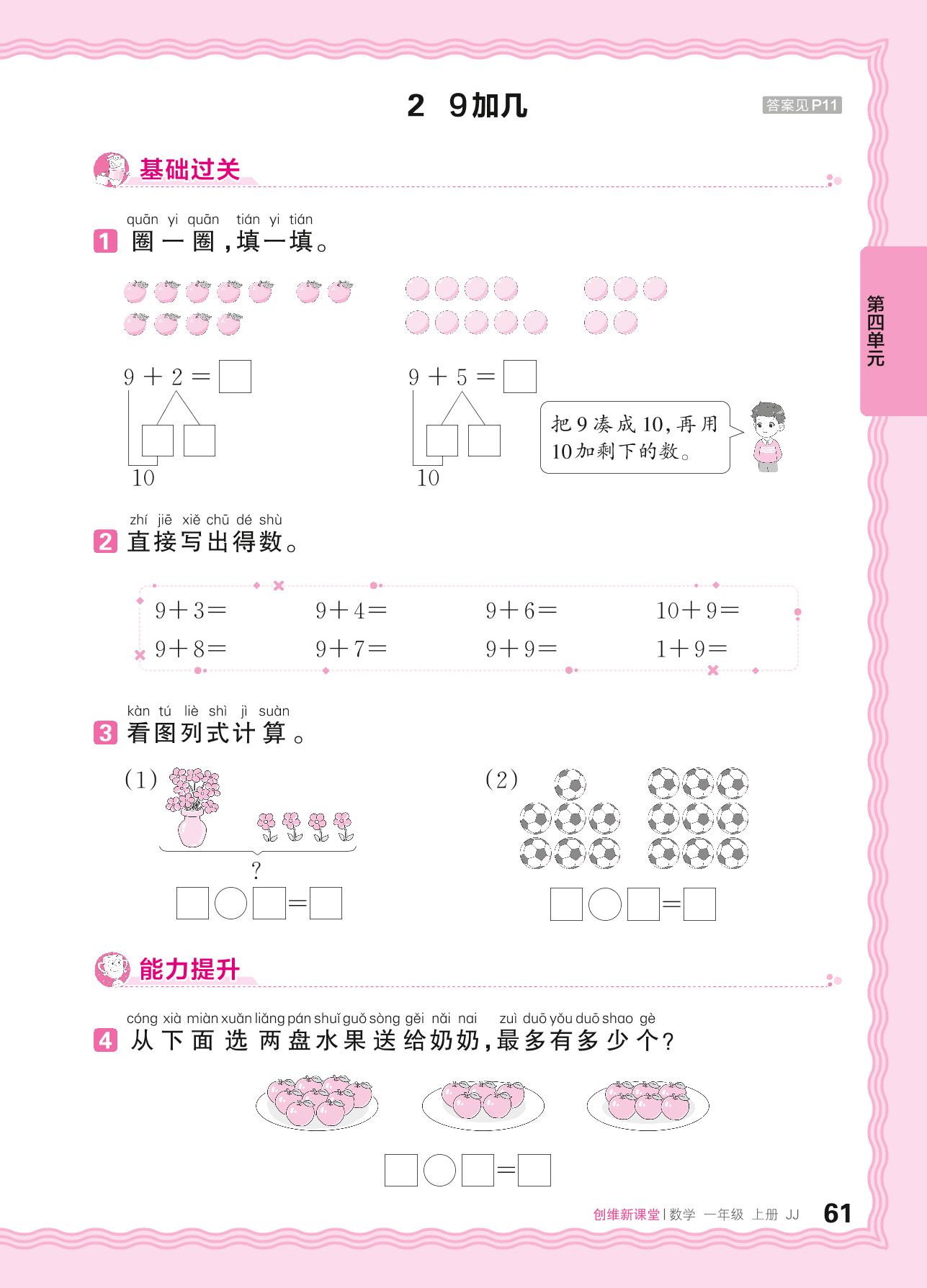 2024秋上册一年级数学冀教版 第四单元 20以内的加法——2. 9加几