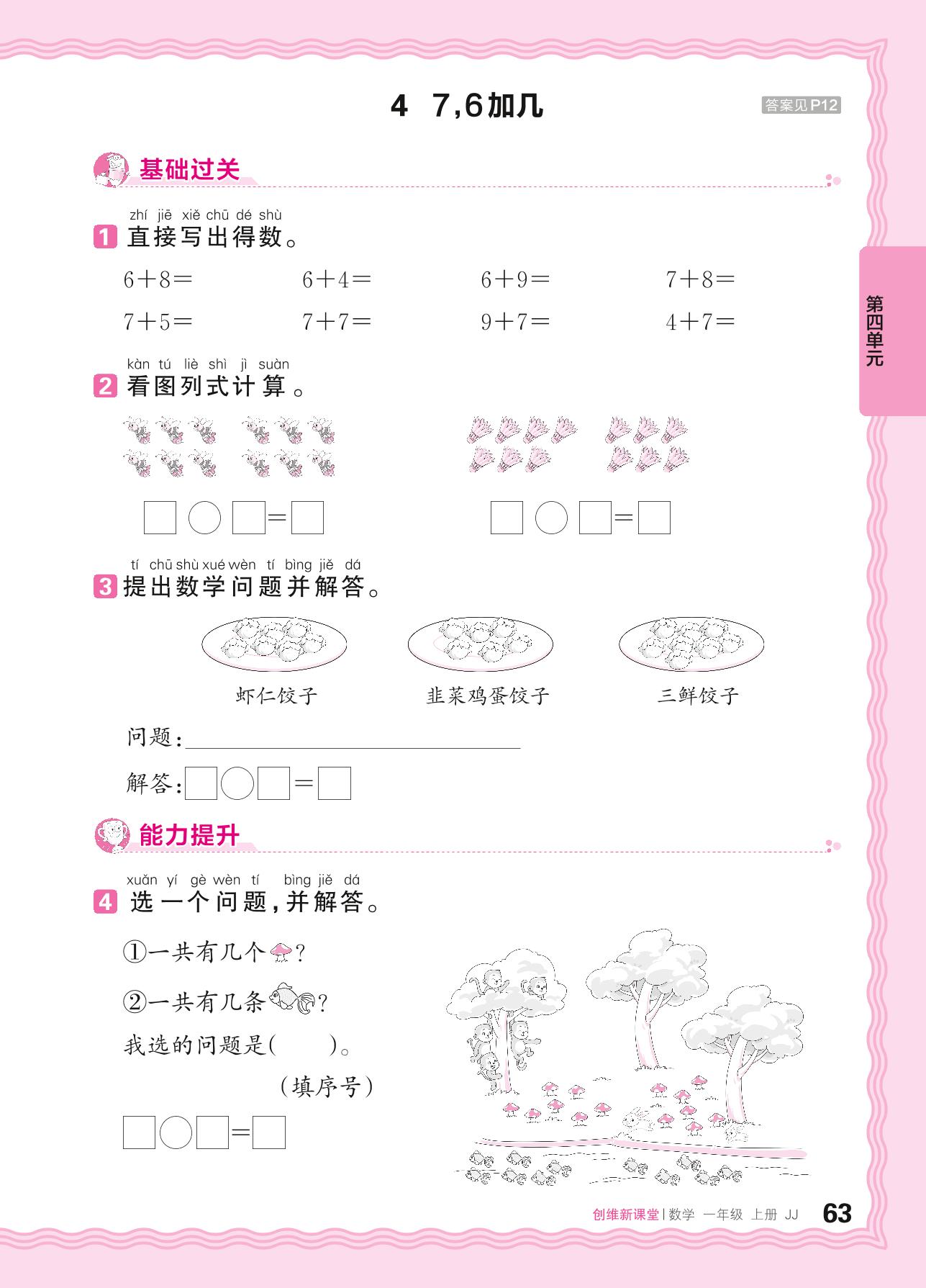 2024秋上册一年级数学冀教版 第四单元 20以内的加法——4. 7,6加几