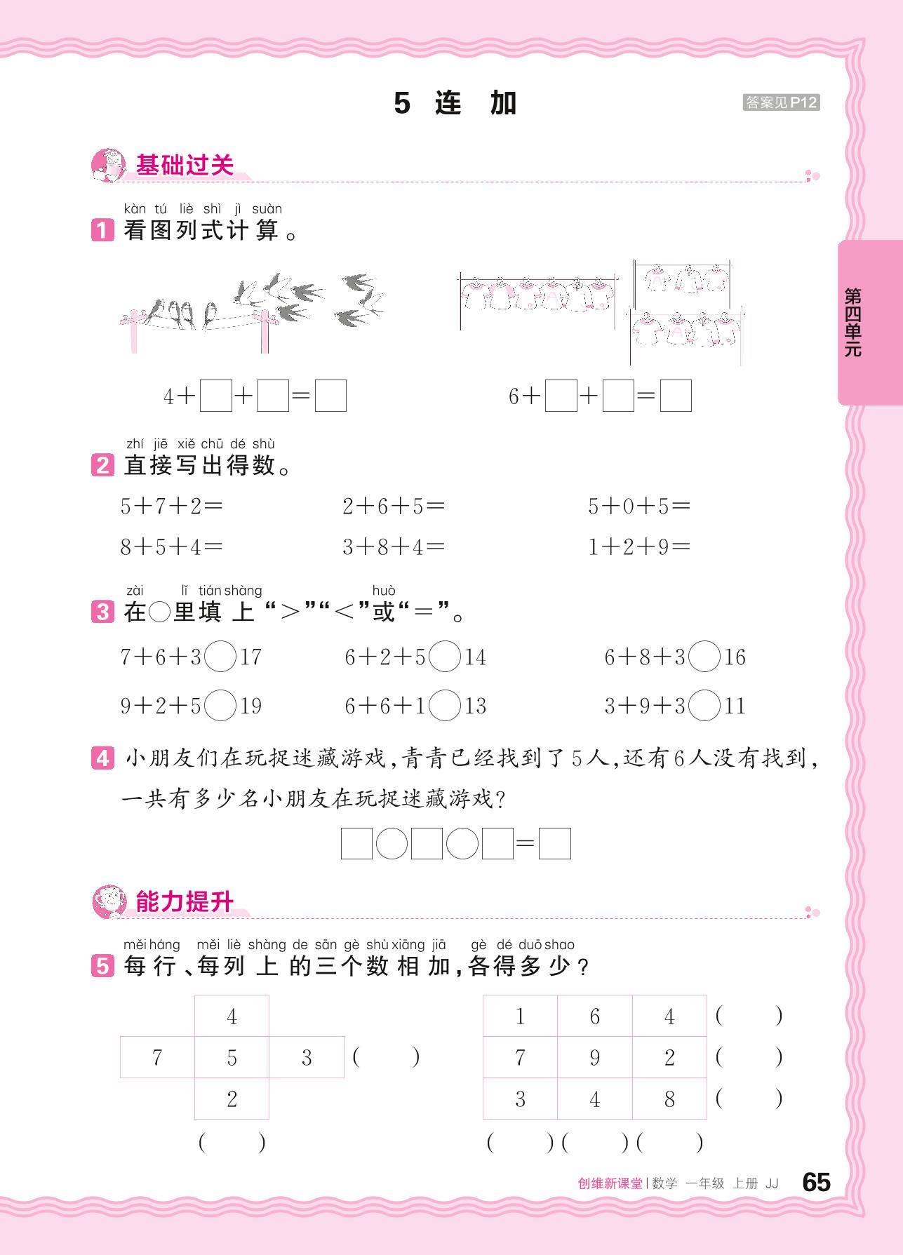 2024秋上册一年级数学冀教版 第四单元 20以内的加法——5. 连加
