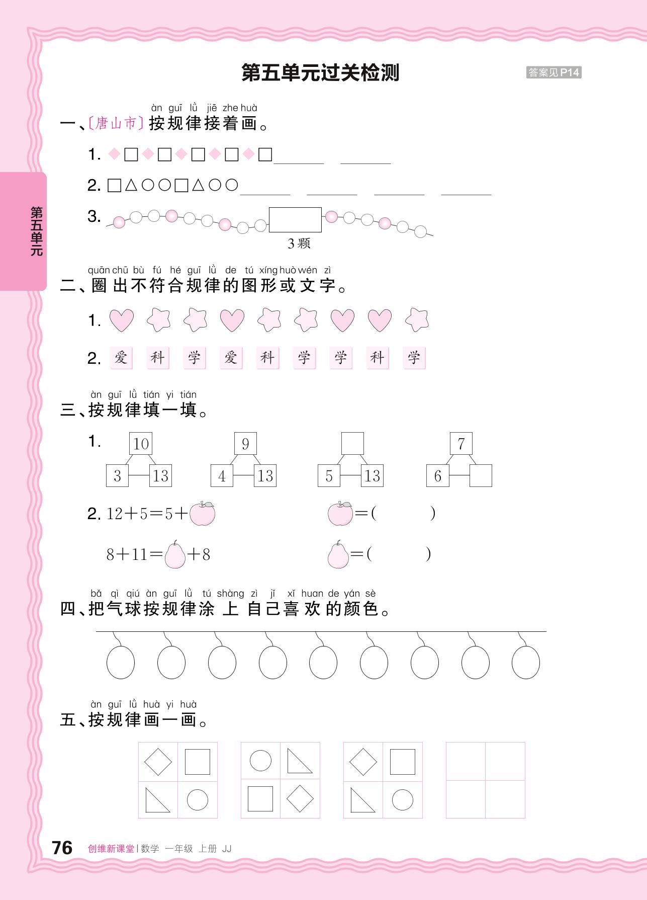 一年级数学冀教版(2024)上册单元卷