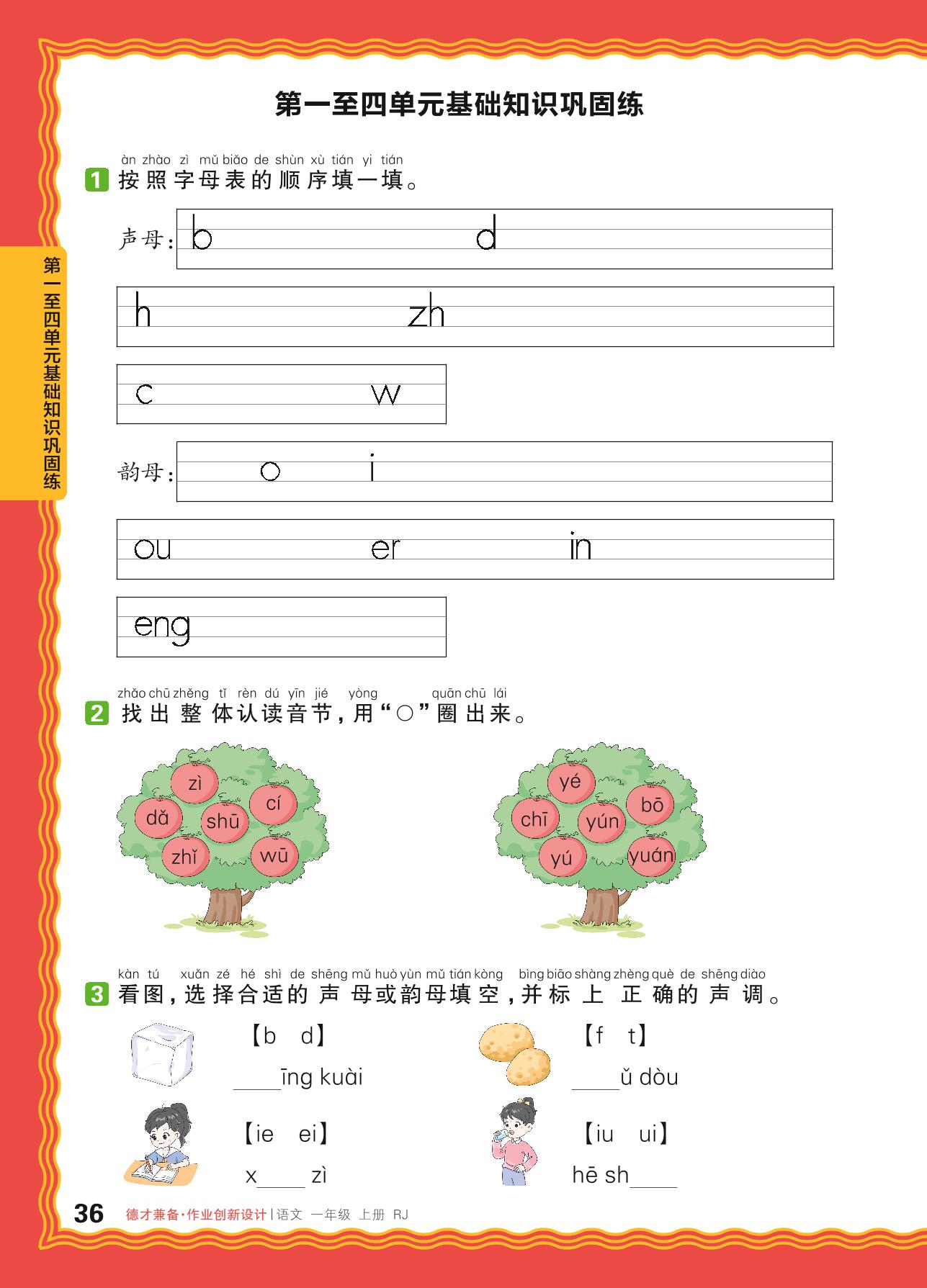 2024秋上册一年级语文人教版 第一至四单元基础知识巩固练