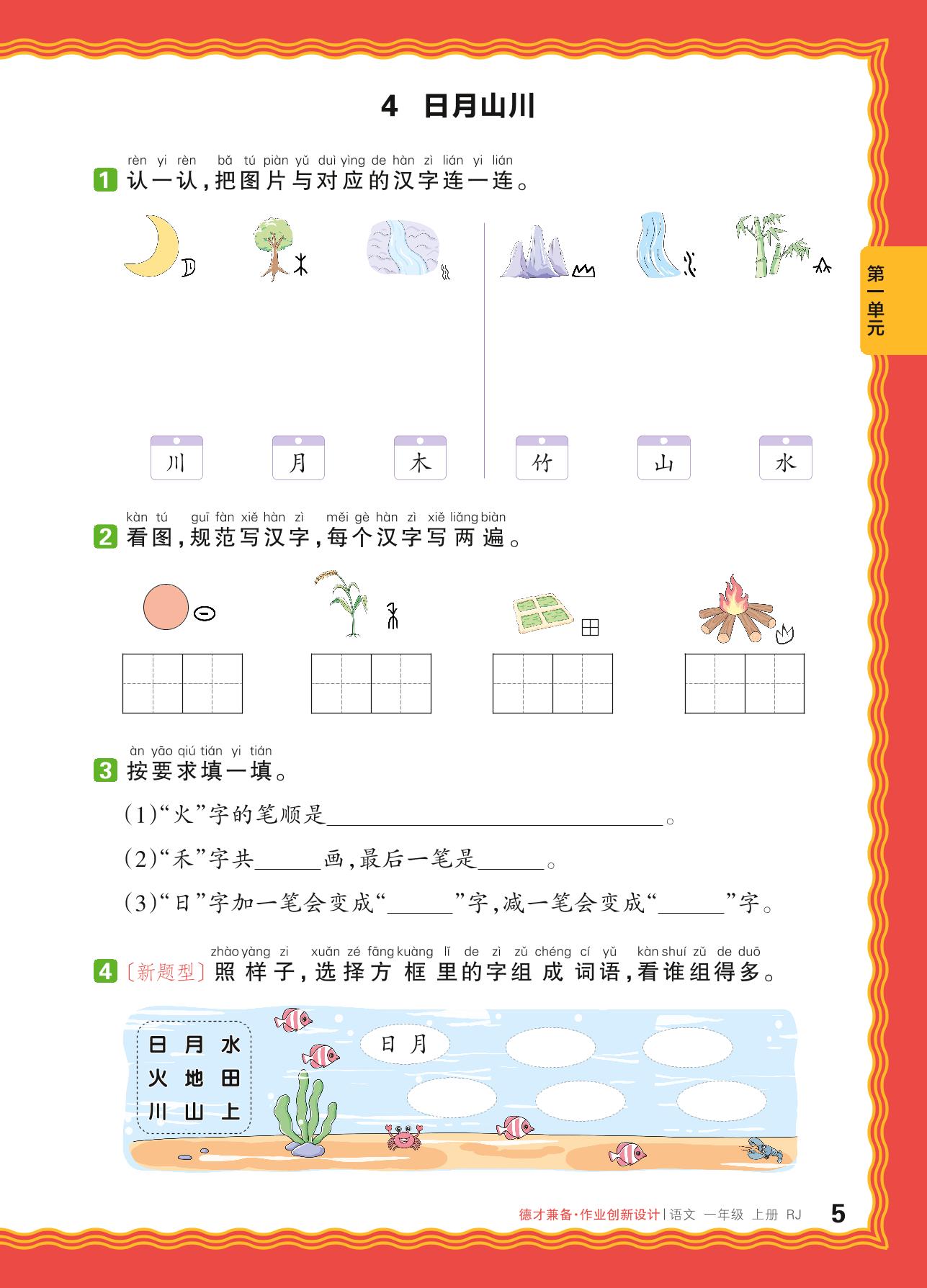 2024秋上册一年级语文人教版 第一单元 识字——4. 日月山川