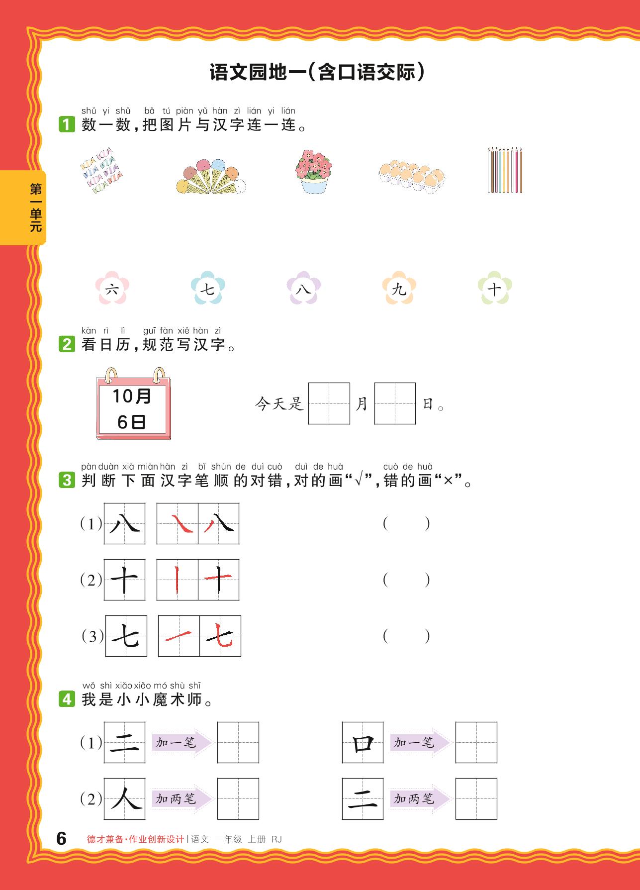 2024秋上册一年级语文人教版 第一单元 识字——语文园地一(含口语交际)
