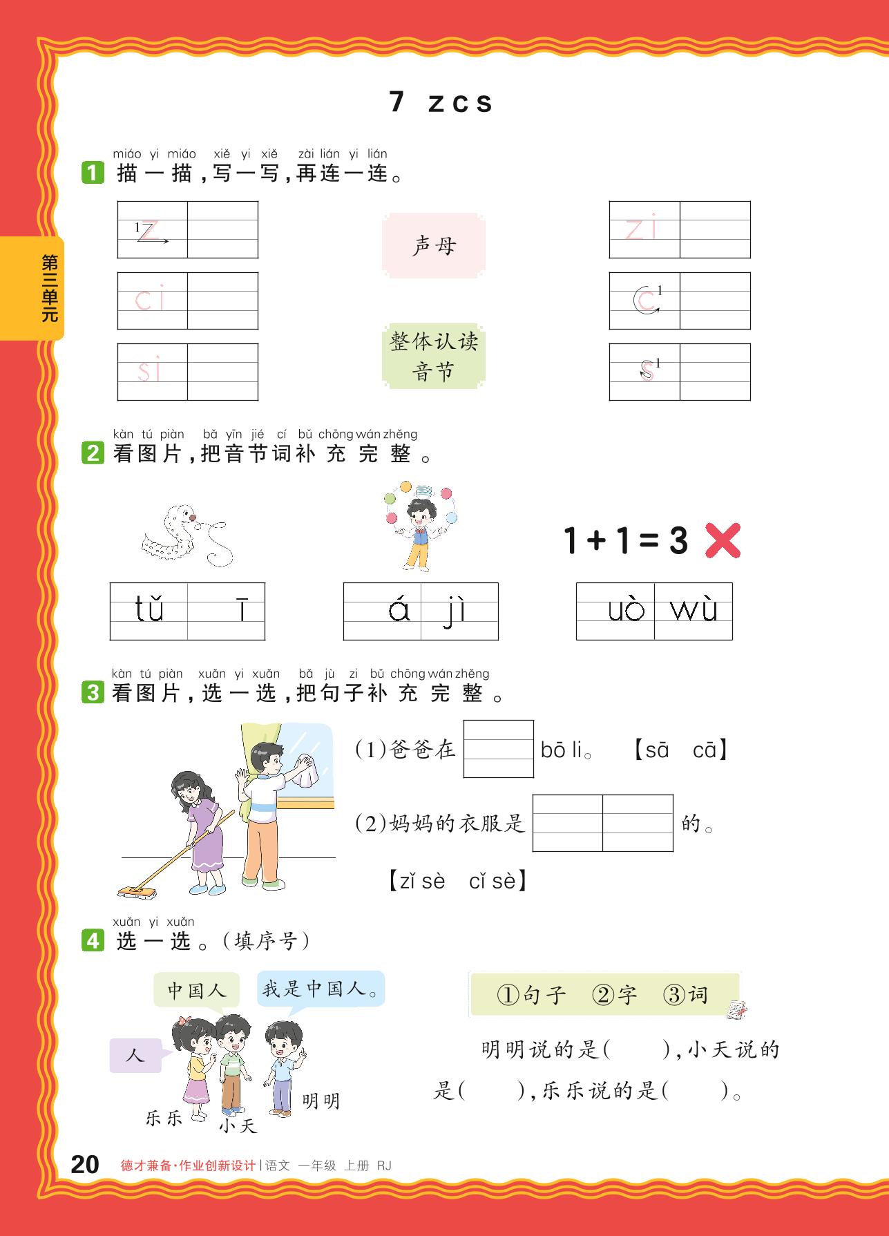 2024秋上册一年级语文人教版 第三单元 汉语拼音——7. z c s