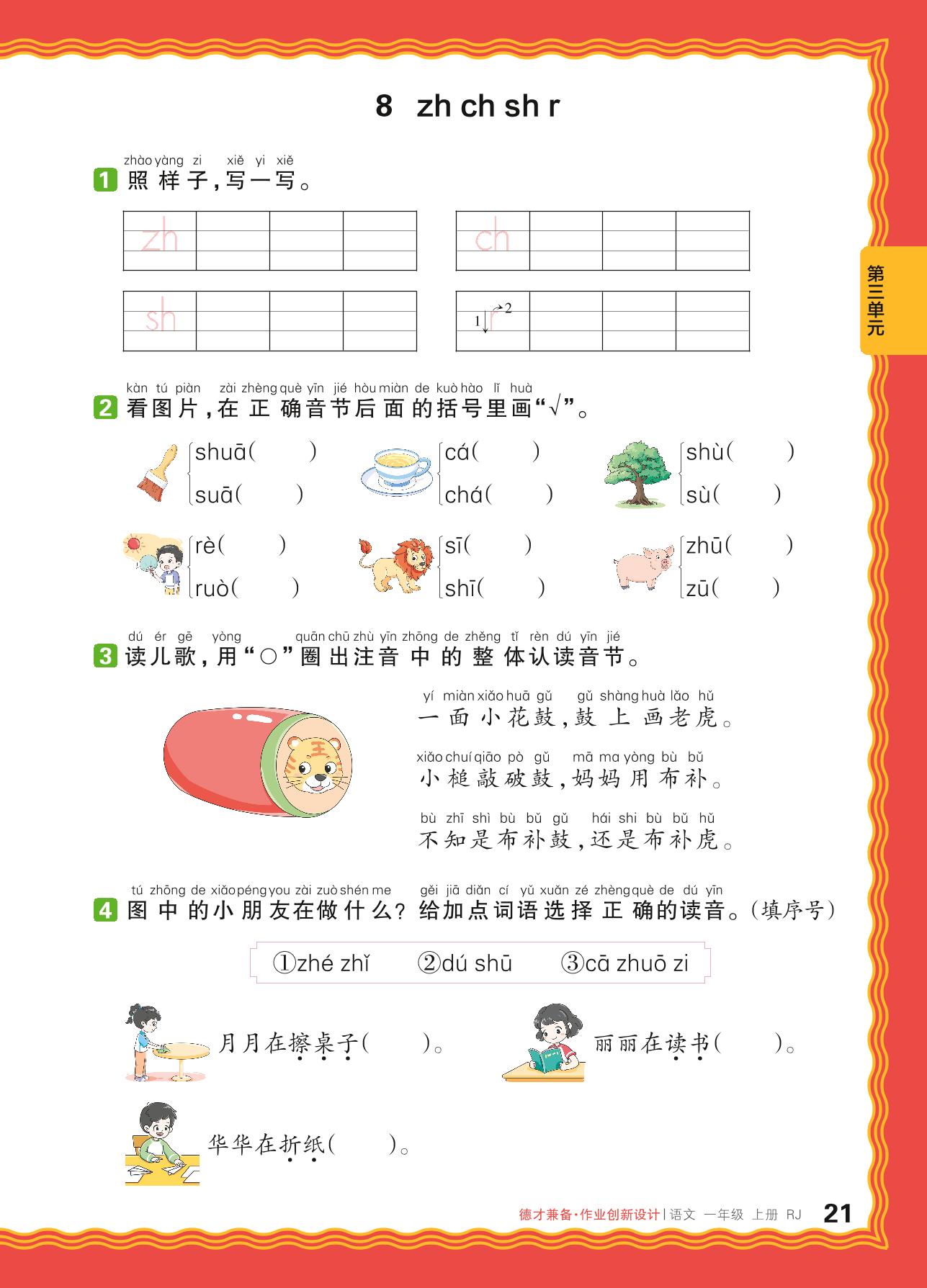 2024秋上册一年级语文人教版 第三单元 汉语拼音——8. zh ch sh r