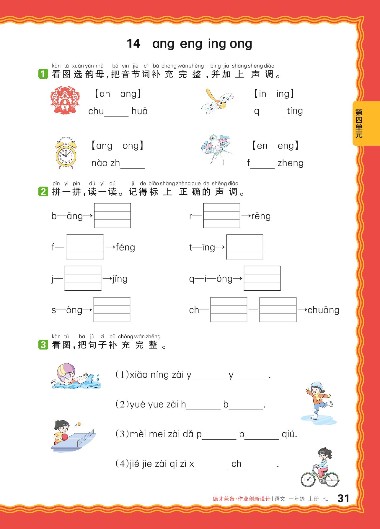 2024秋上册一年级语文人教版 第四单元 汉语拼音——14. ang eng ing ong