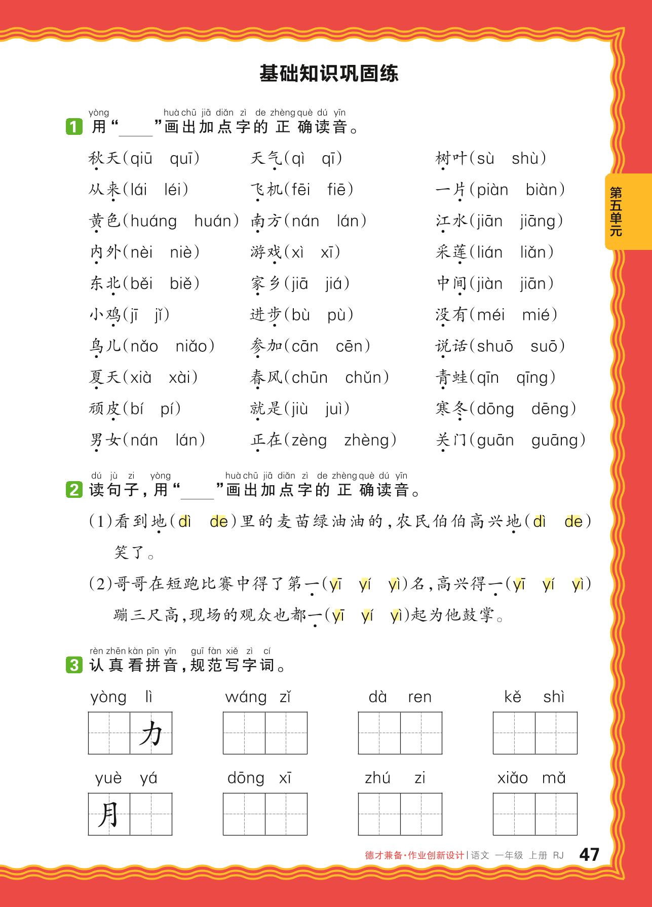 2024秋上册一年级语文人教版 第五单元 阅读——基础知识巩固练