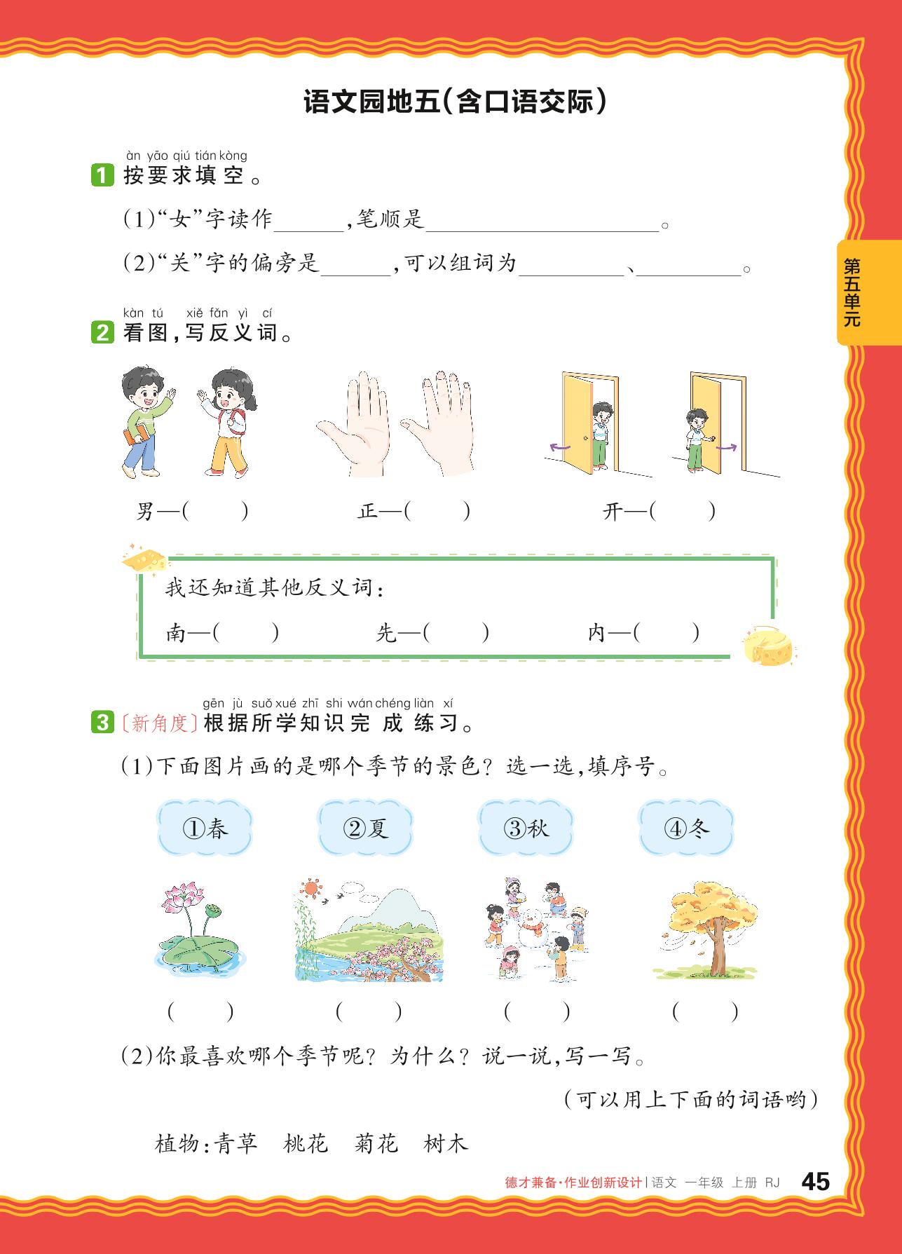 2024秋上册一年级语文人教版 第五单元 阅读——语文园地五(含口语交际)