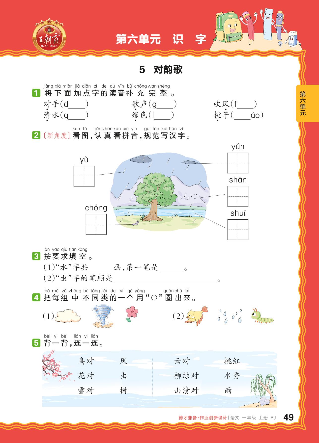 2024秋上册一年级语文人教版 第六单元 识字——5. 对韵歌