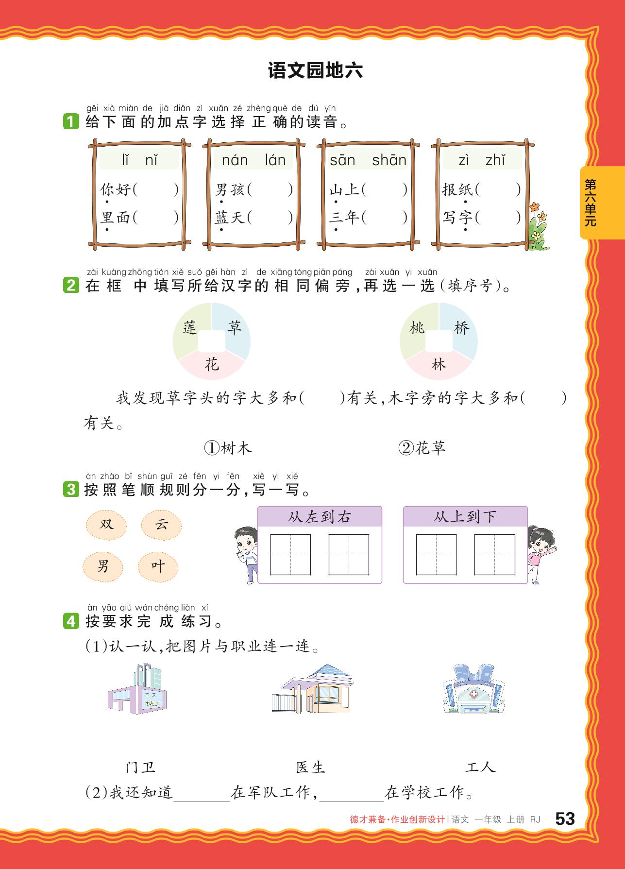 2024秋上册一年级语文人教版 第六单元 识字——语文园地六