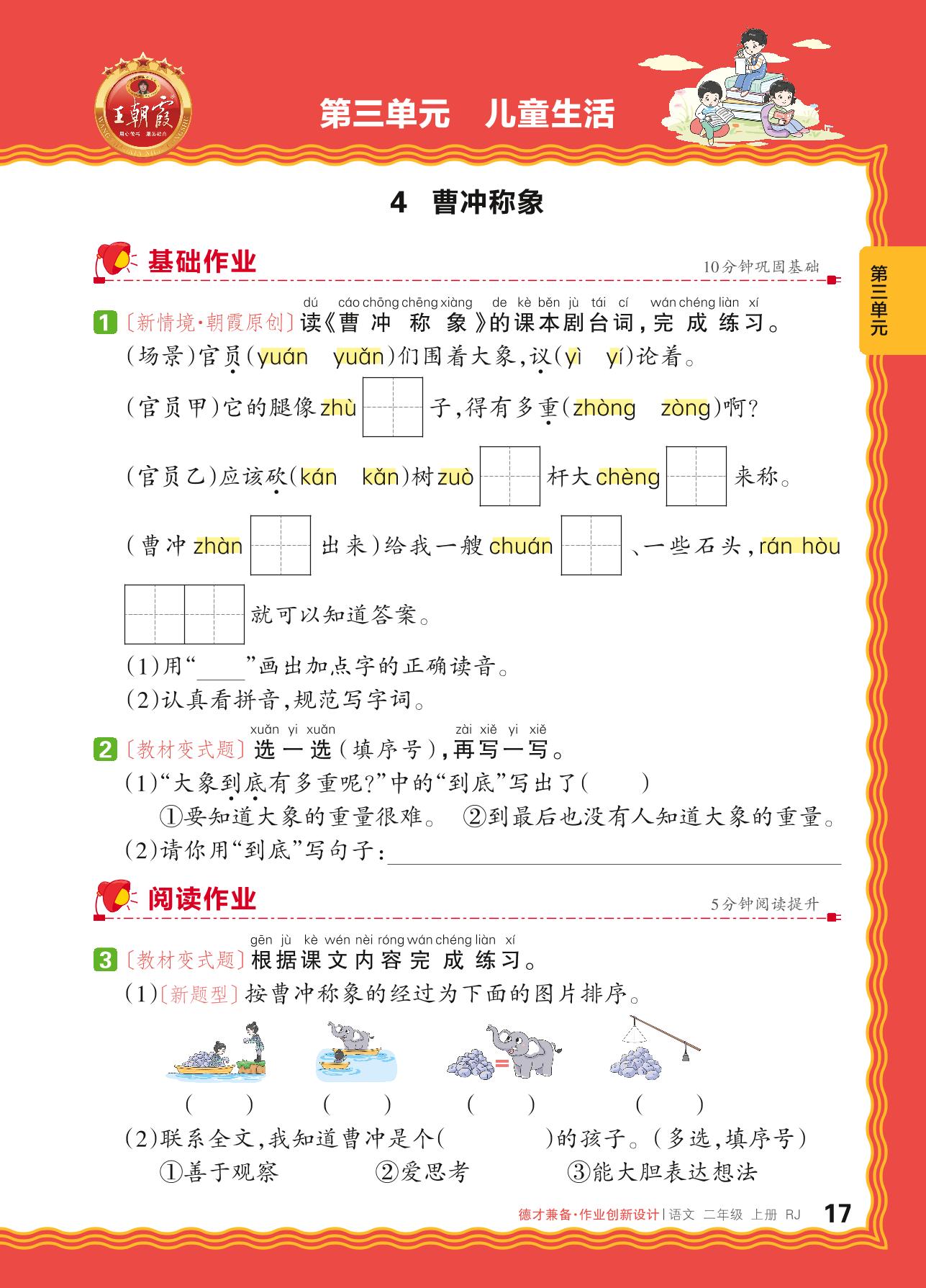 2024秋上册二年级语文人教版 第三单元 儿童生活——4. 曹冲称象