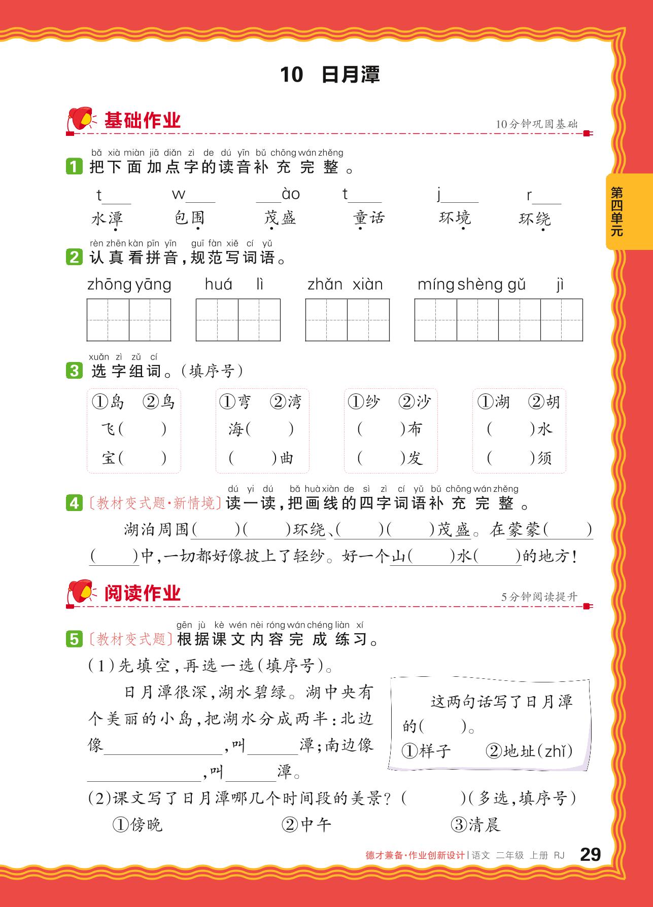 2024秋上册二年级语文人教版 第四单元 家乡——10. 日月潭