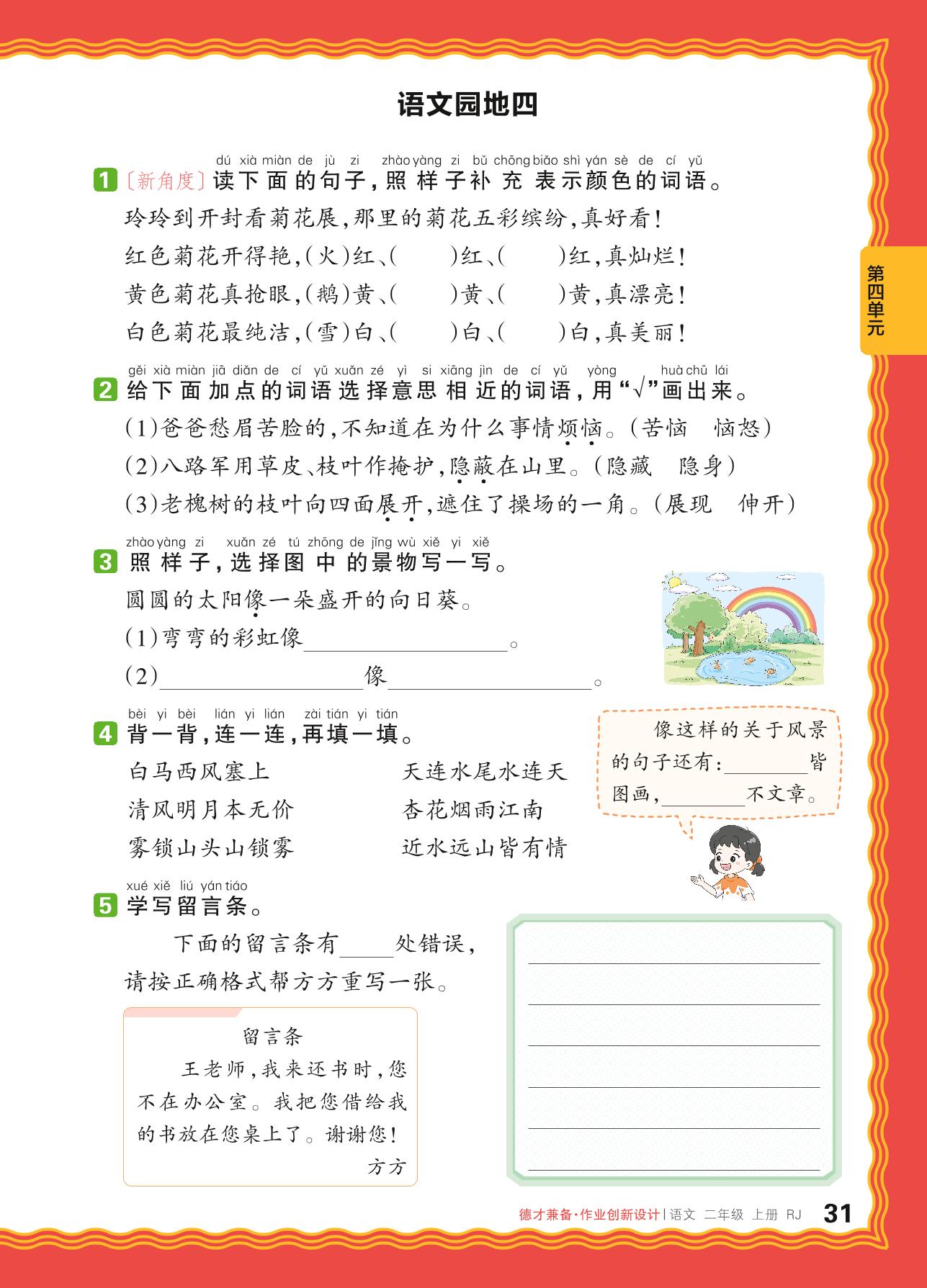 2024秋上册二年级语文人教版 第四单元 家乡——语文园地四
