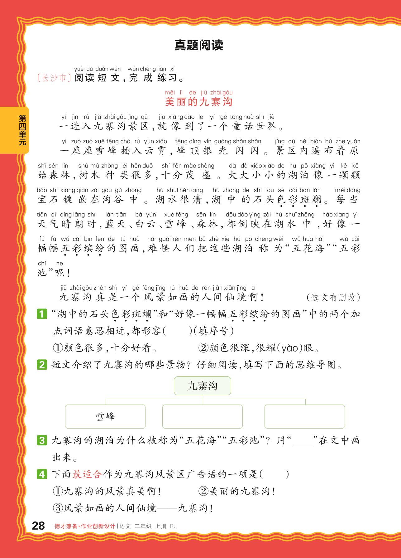 2024秋上册二年级语文人教版 第四单元 家乡——真题阅读