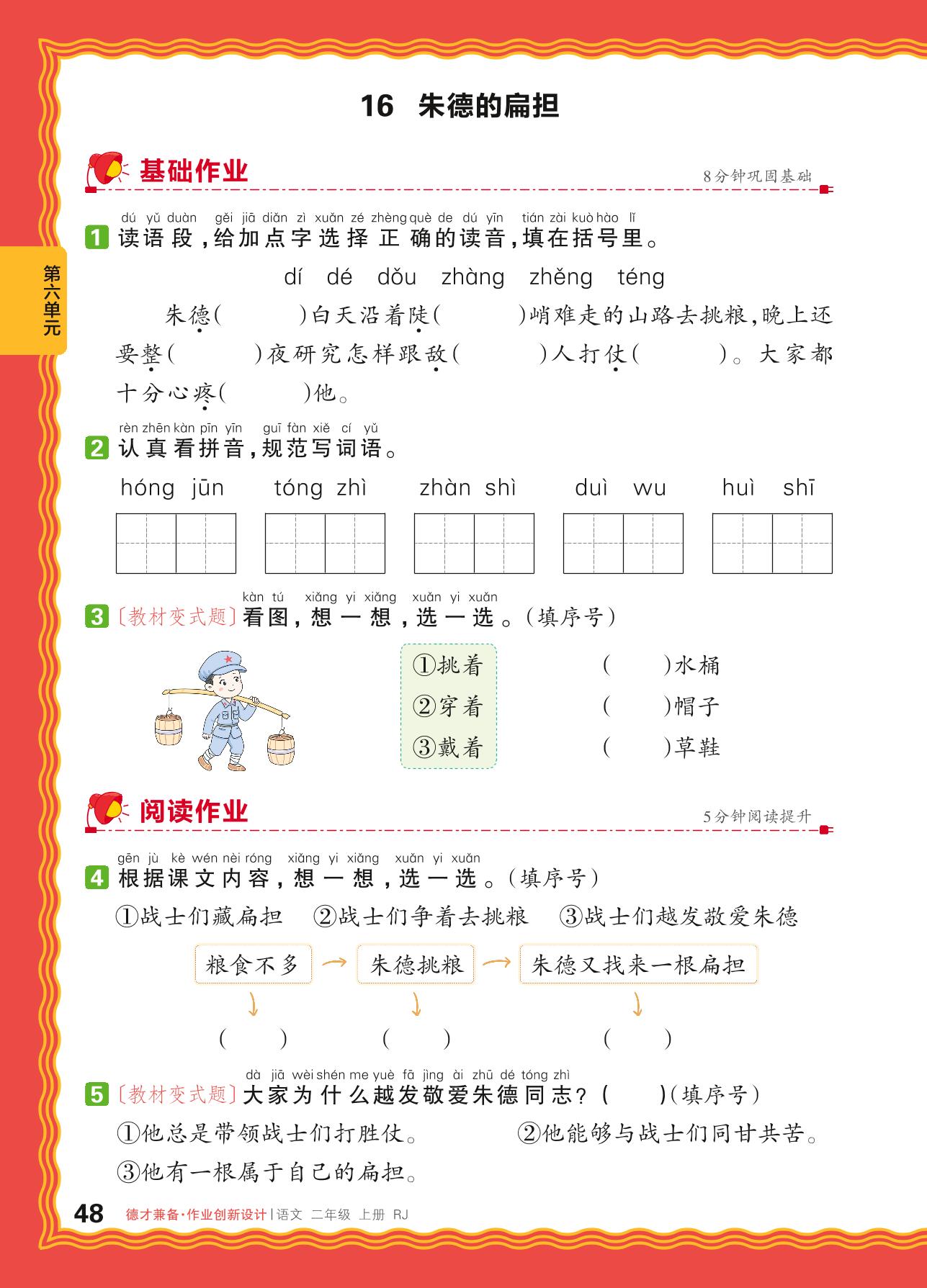 2024秋上册二年级语文人教版 第六单元 革命先辈——16. 朱德的扁担