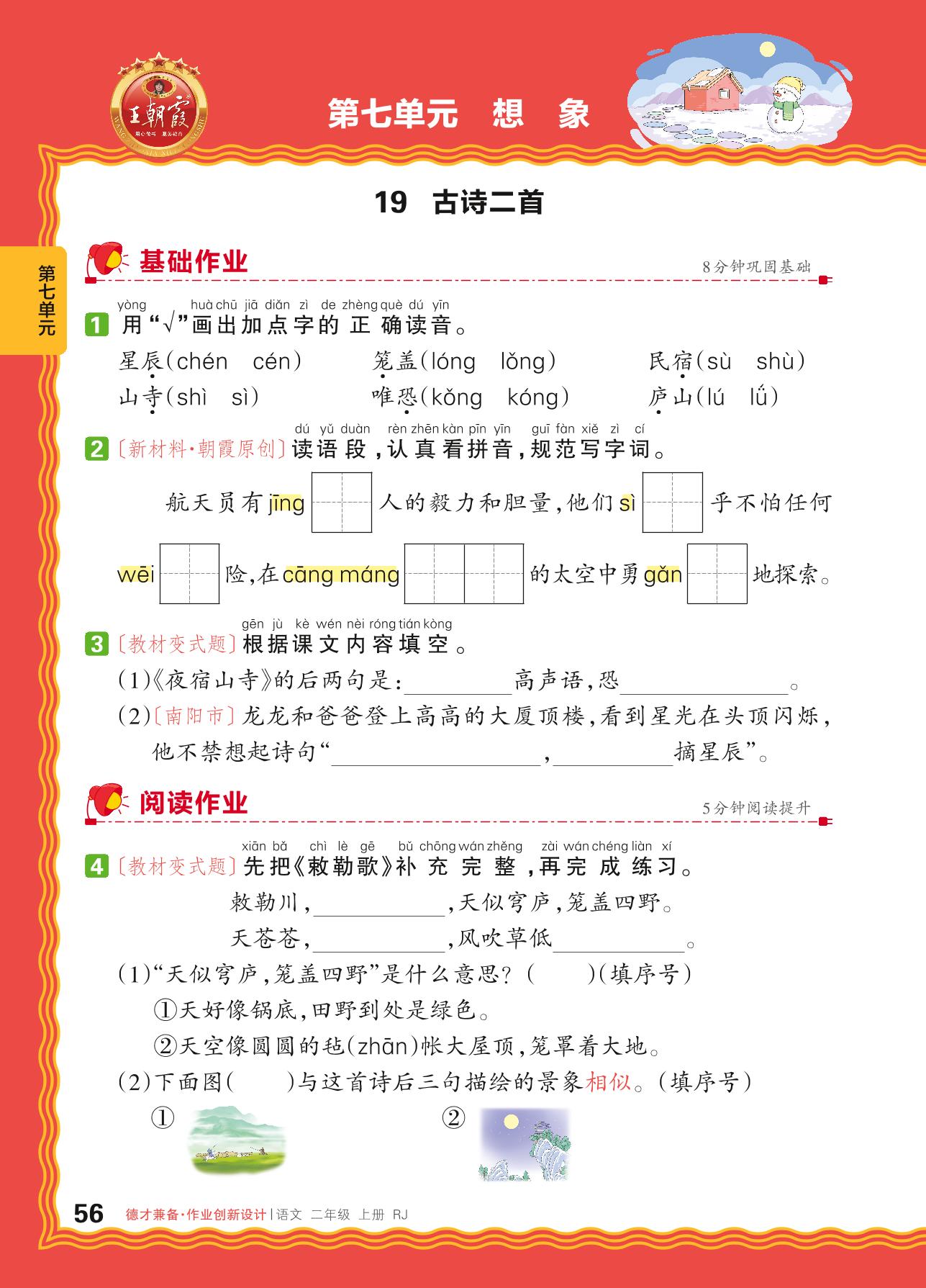 2024秋上册二年级语文人教版 第七单元 想象——19. 古诗二首