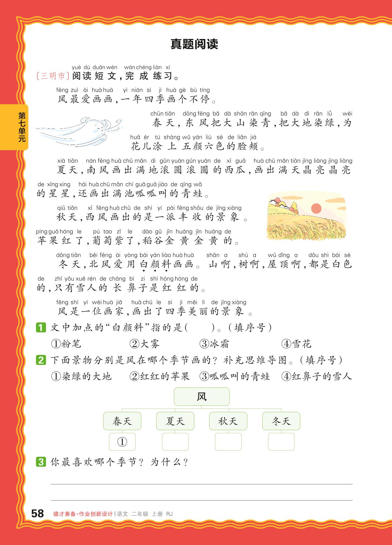 2024秋上册二年级语文人教版 第七单元 想象——真题阅读