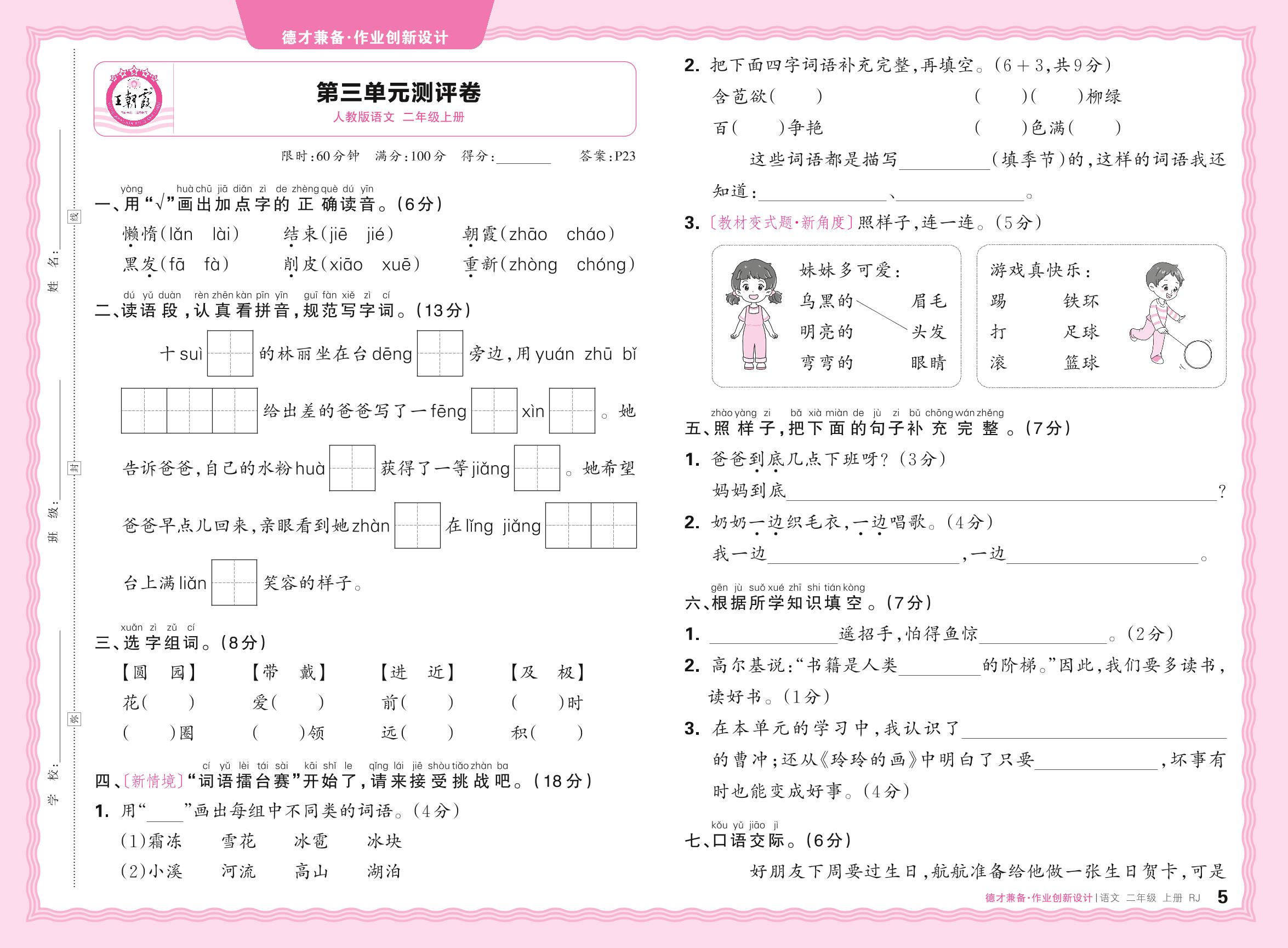 二年级语文人教版上册单元卷