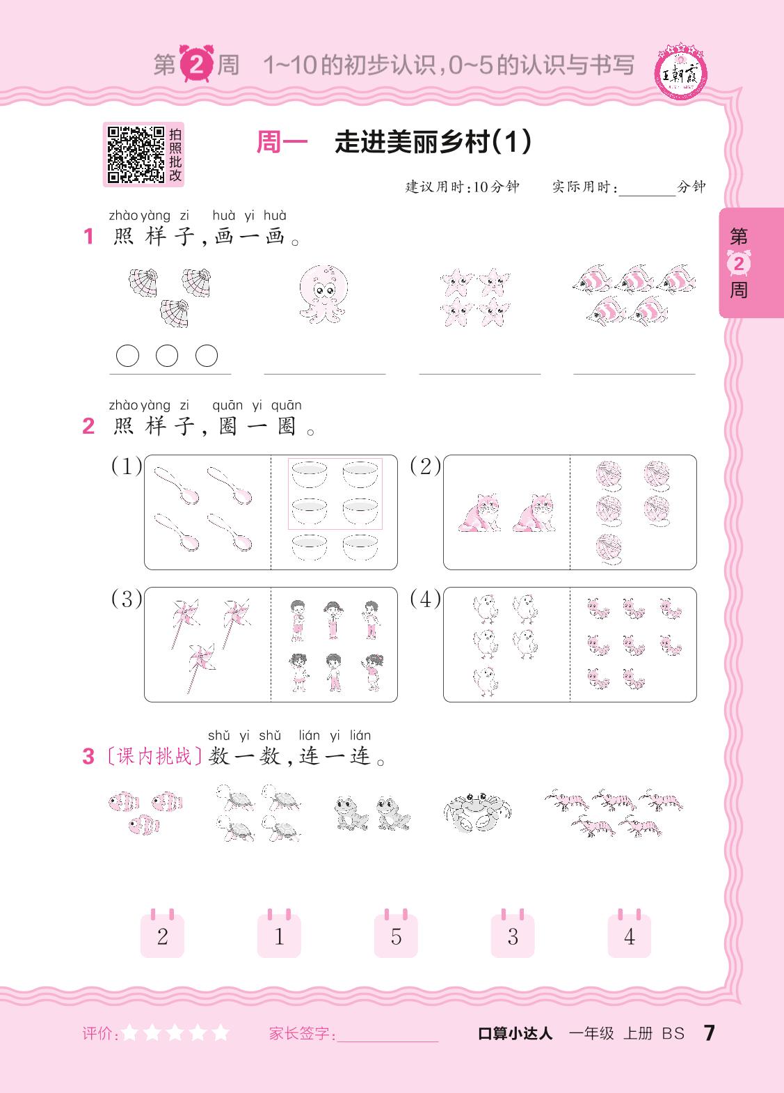 2024秋上册一年级数学北师版 口算计算专练 第2周