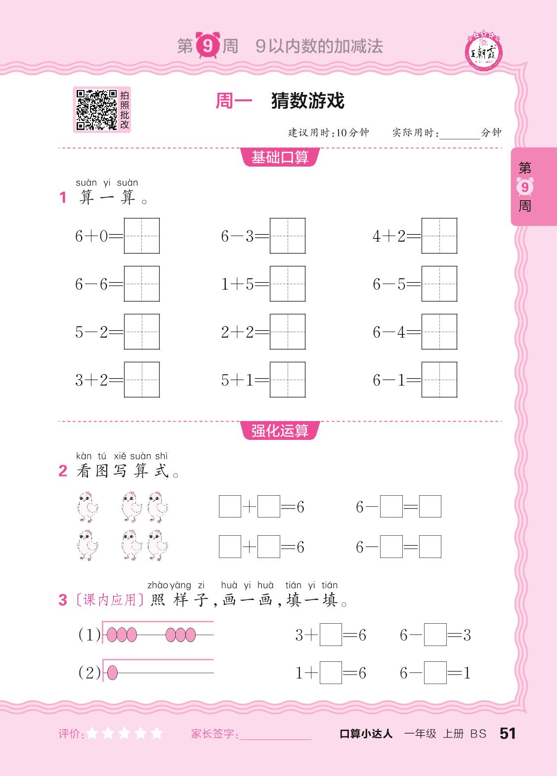 2024秋上册一年级数学北师版 口算计算专练 第9周