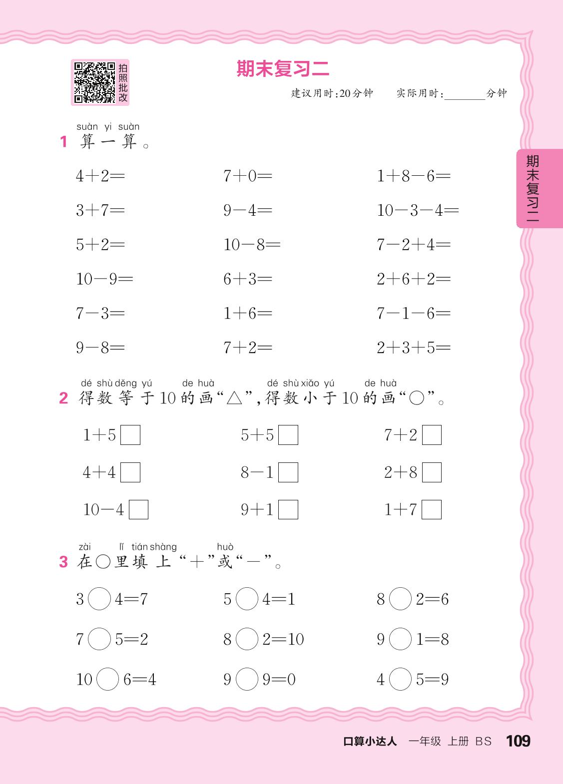 2024秋上册一年级数学北师版 期末复习二(计算专练)