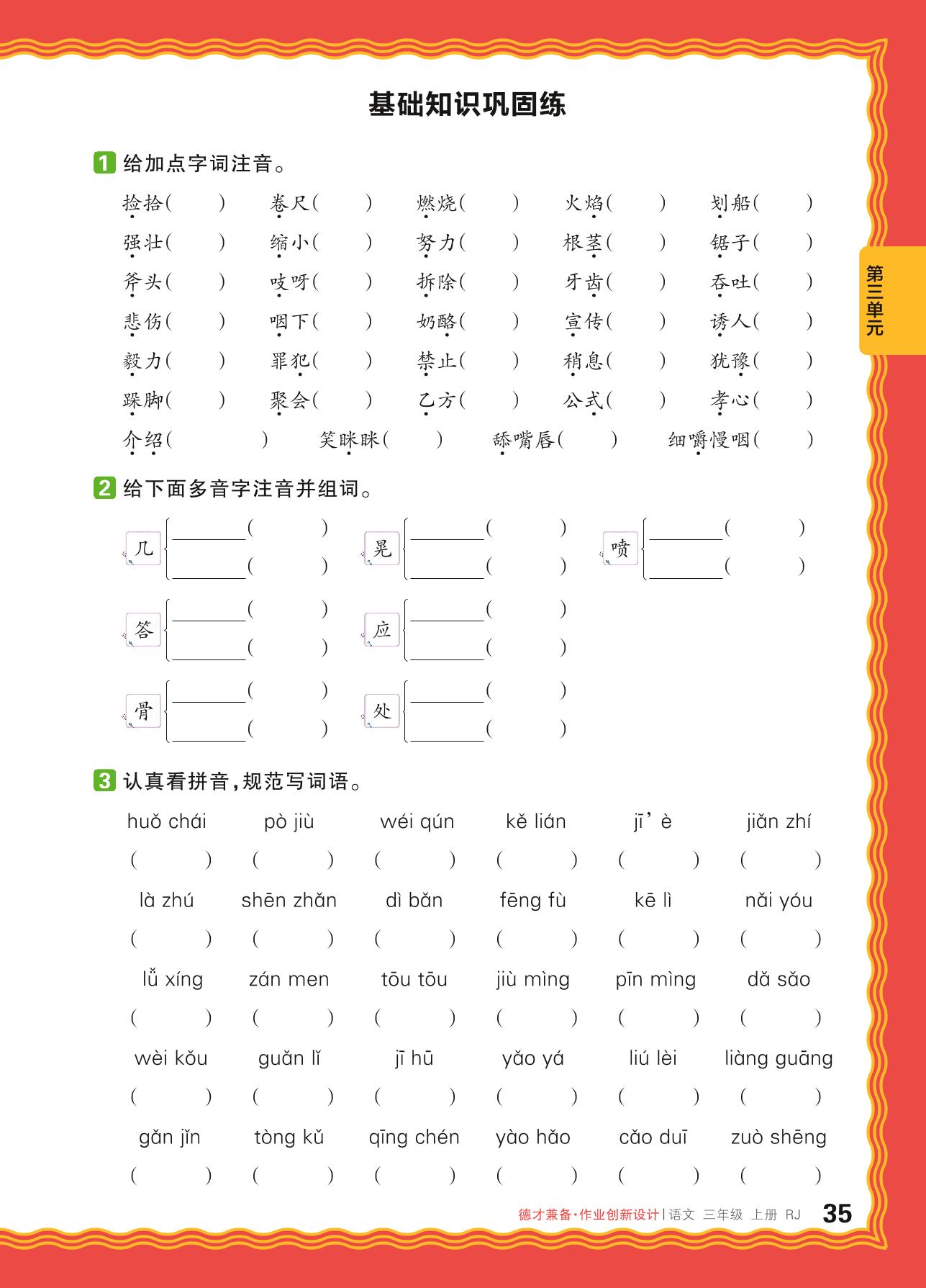 2024秋上册三年级语文人教版 第三单元 童话世界——基础知识巩固练