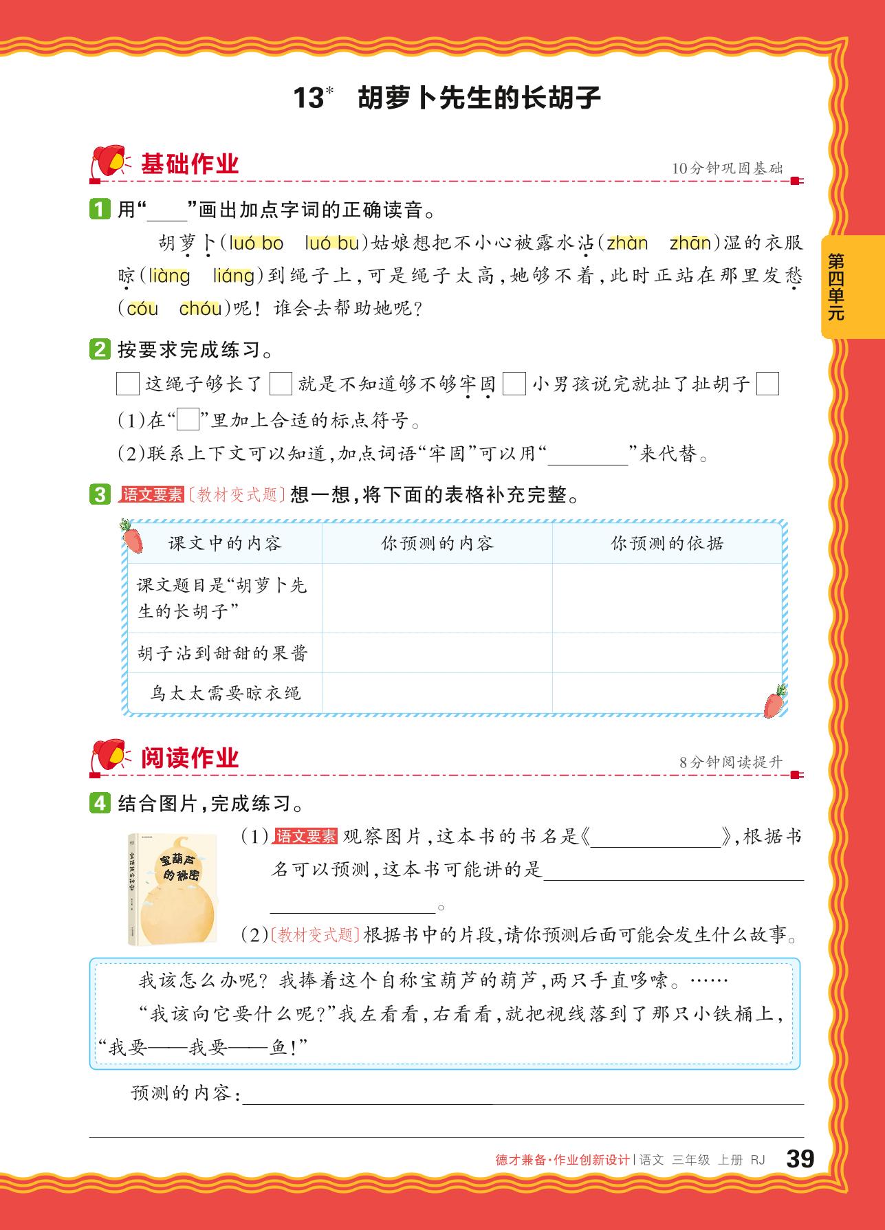 2024秋上册三年级语文人教版 第四单元 阅读策略:预测——13. 胡萝卜先生的长胡子