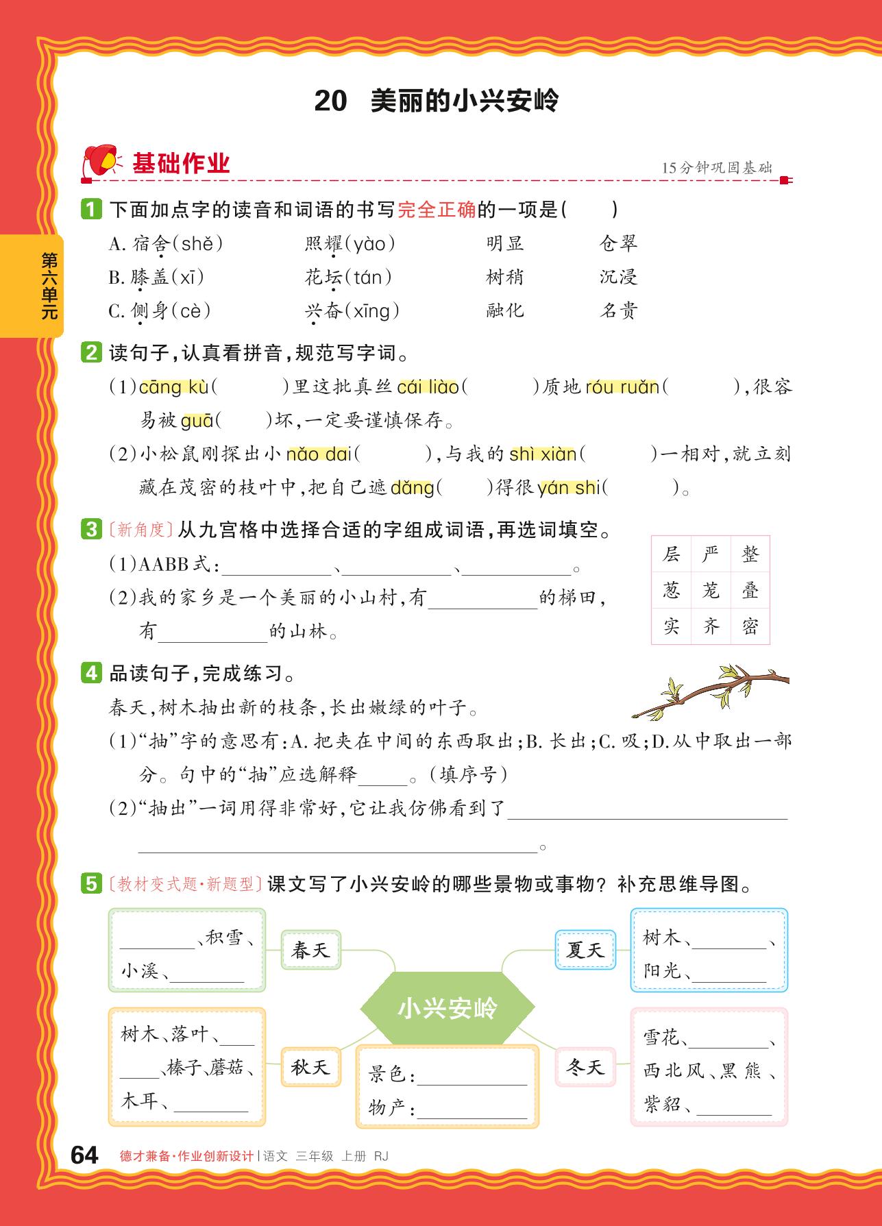 2024秋上册三年级语文人教版 第六单元 祖国河山——20. 美丽的小兴安岭