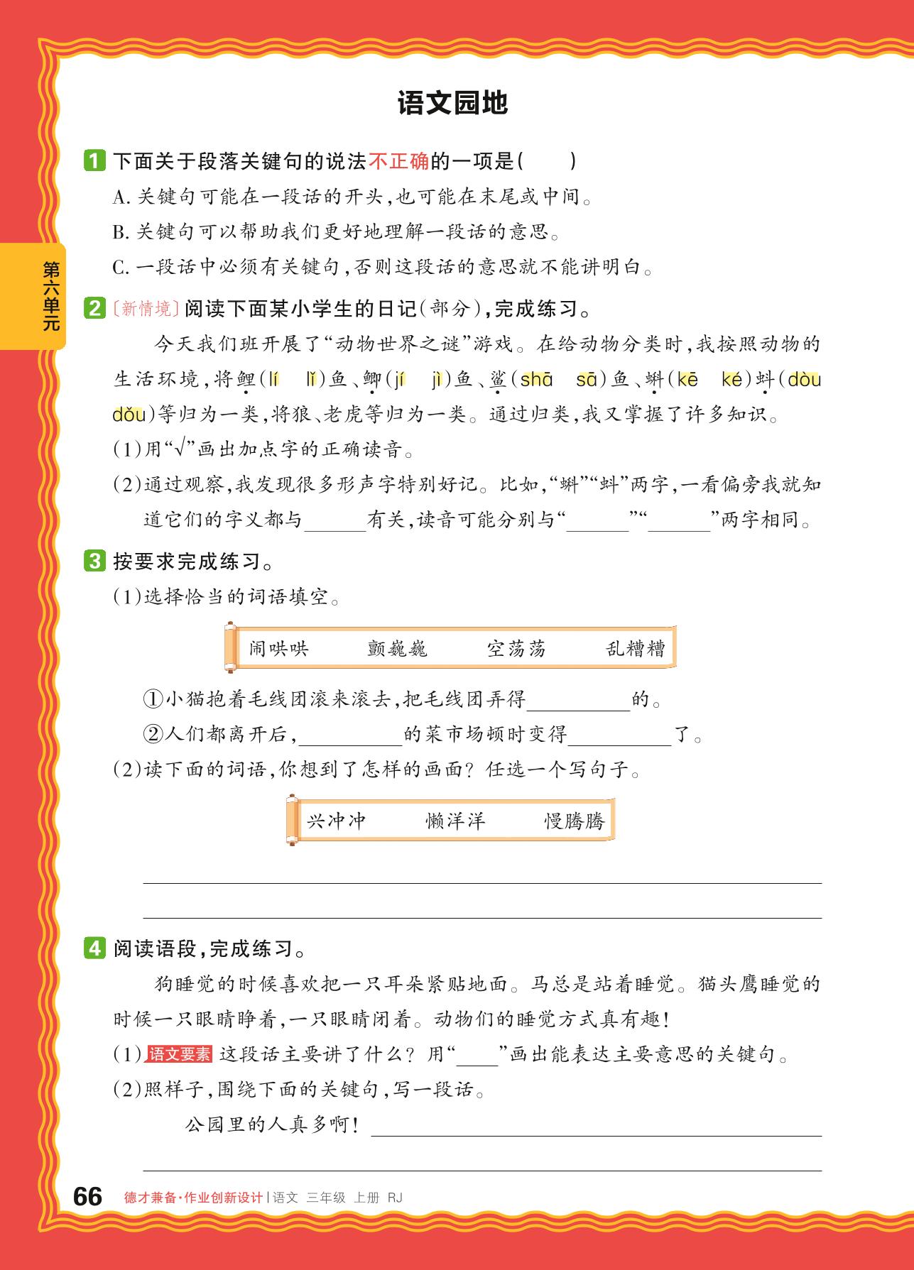 2024秋上册三年级语文人教版 第六单元 祖国河山——语文园地