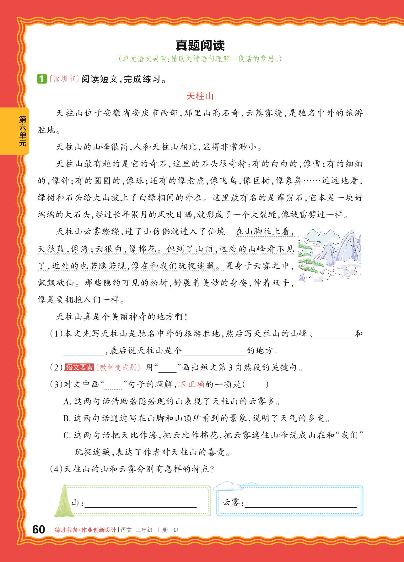 2024秋上册三年级语文人教版 第六单元 祖国河山——真题阅读