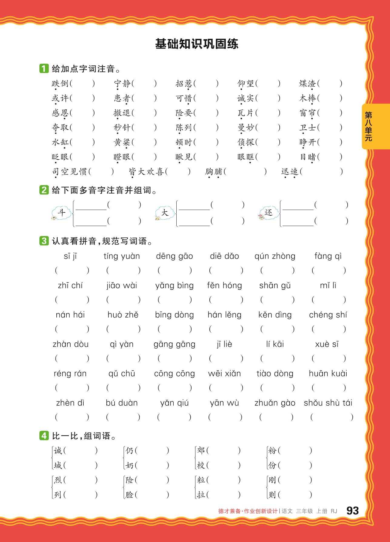 2024秋上册三年级语文人教版 第八单元 美好品质——基础知识巩固练