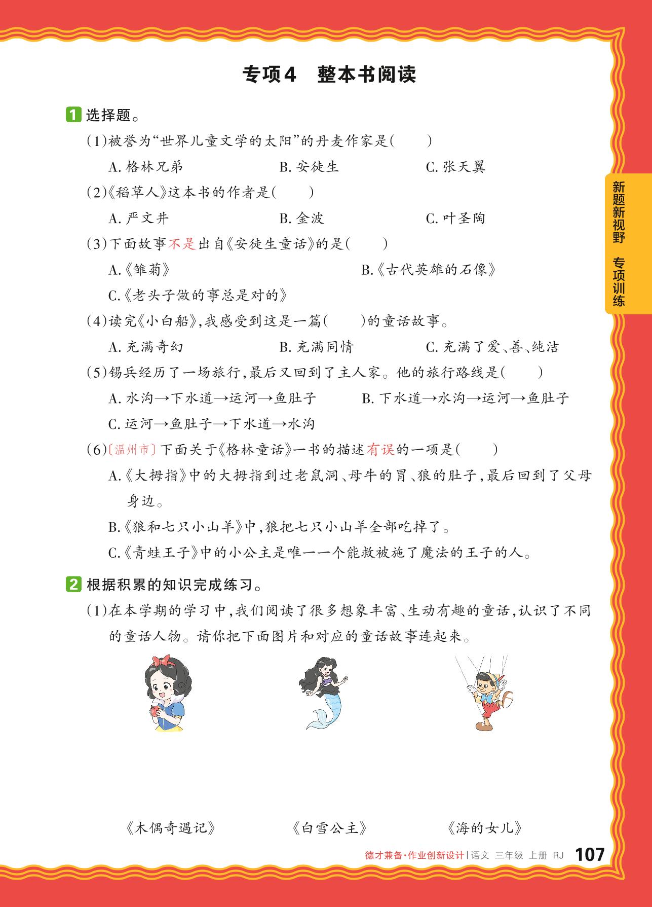 2024秋上册三年级语文人教版 新题新视野 专项训练——整本书阅读【4】
