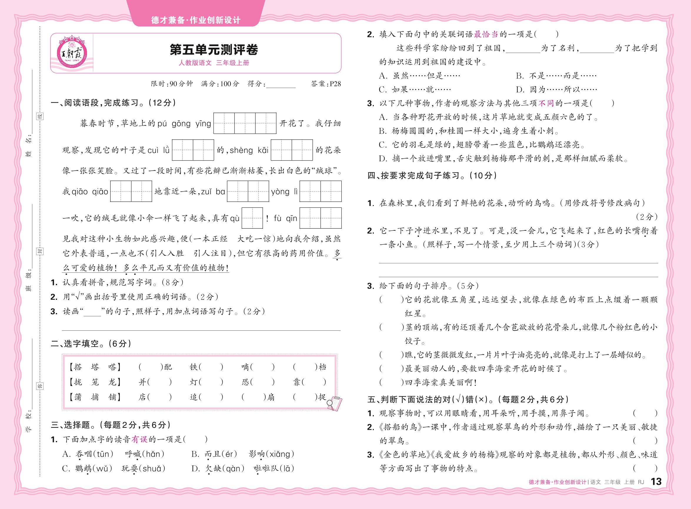 三年级语文人教版上册单元卷