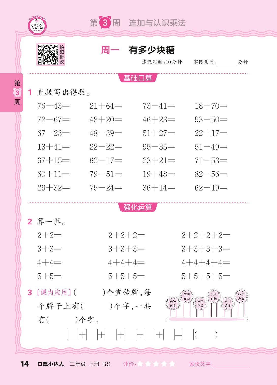 2024秋上册二年级数学北师版 口算计算专练 第3周
