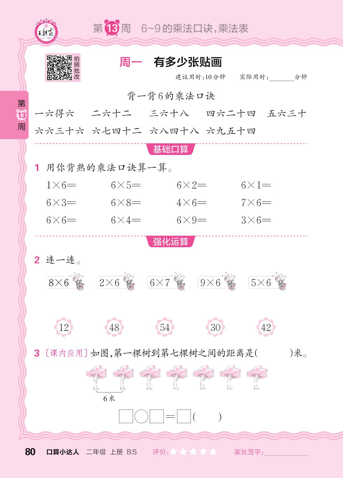 2024秋上册二年级数学北师版 口算计算专练 第13周