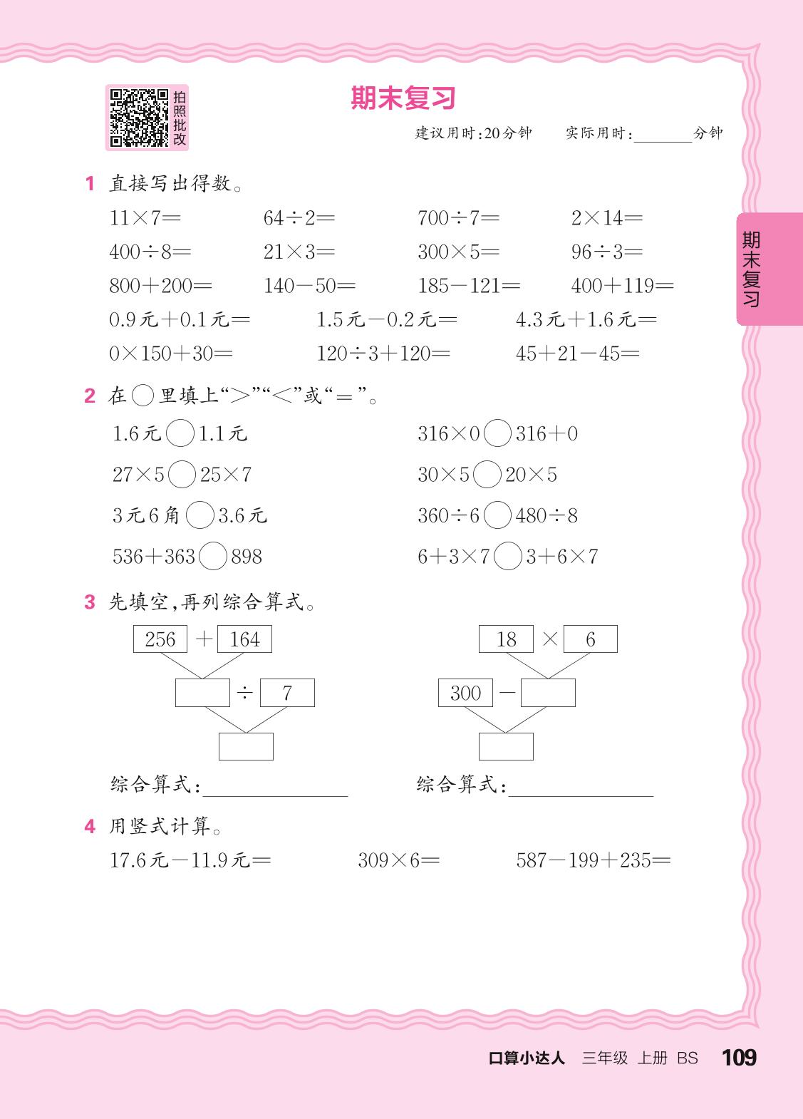 2024秋上册三年级数学北师版 期末复习(计算专练)