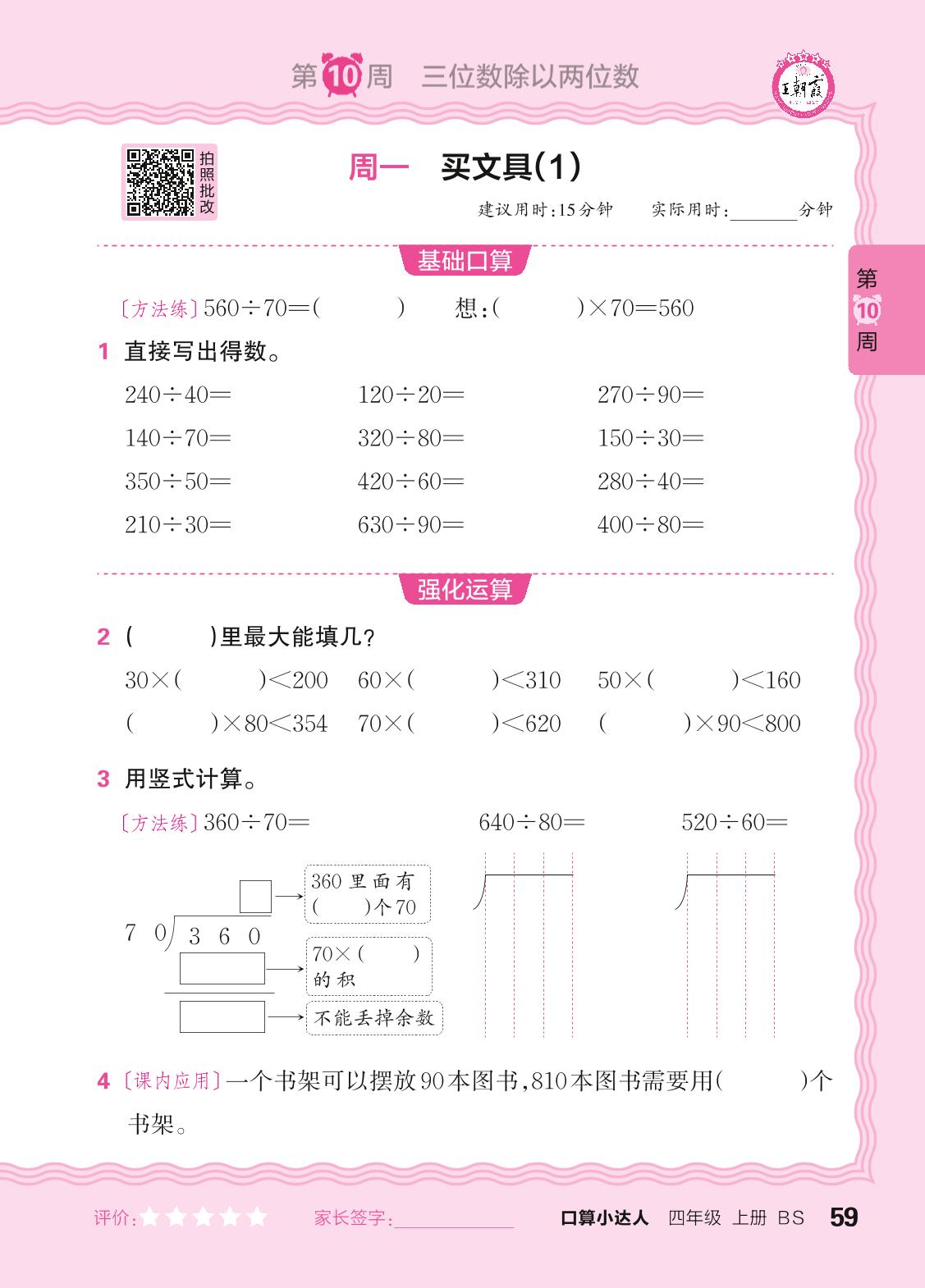 2024秋上册四年级数学北师版 口算计算专练 第10周