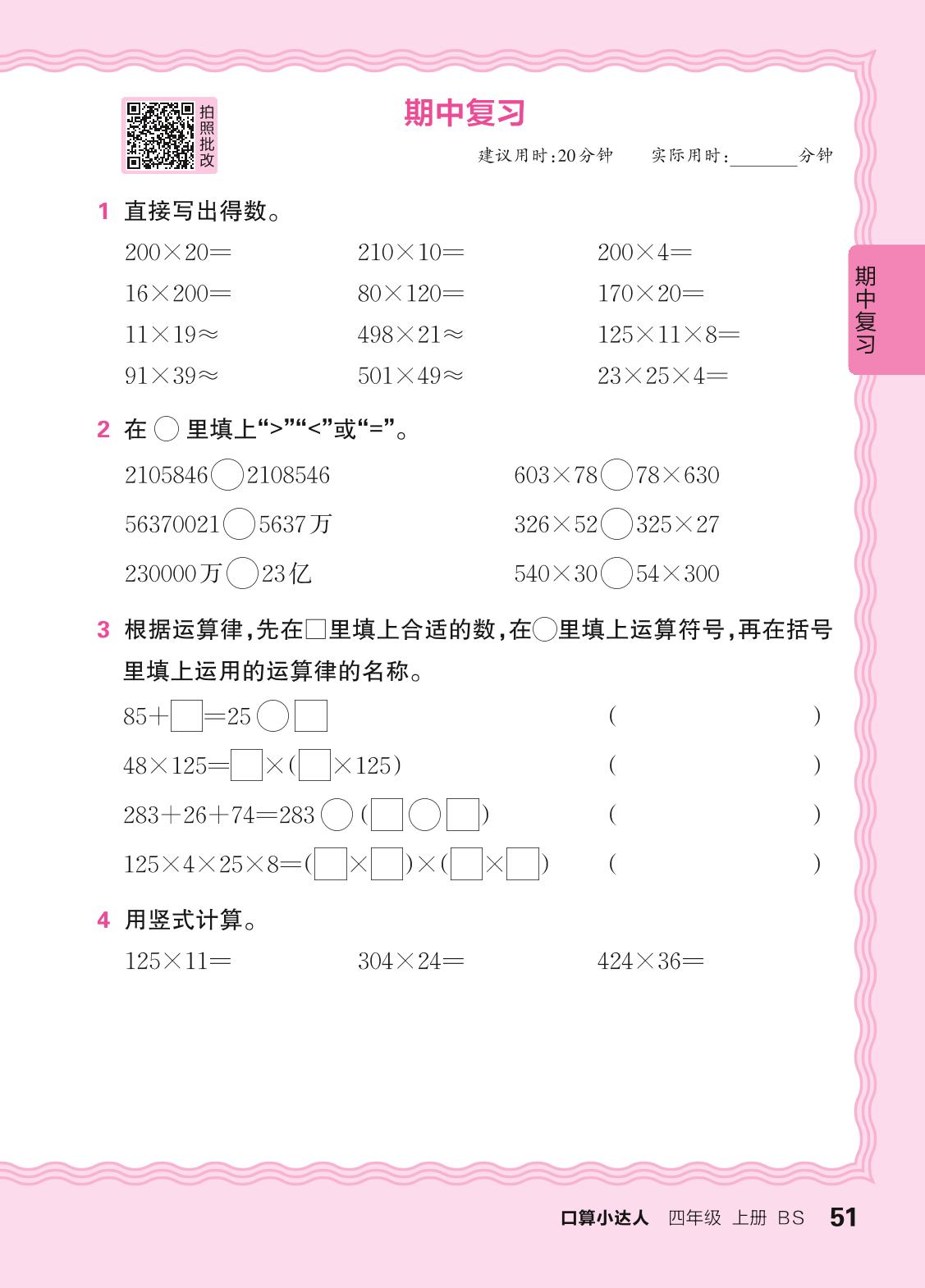 2024秋上册四年级数学北师版 期中复习(计算专练)