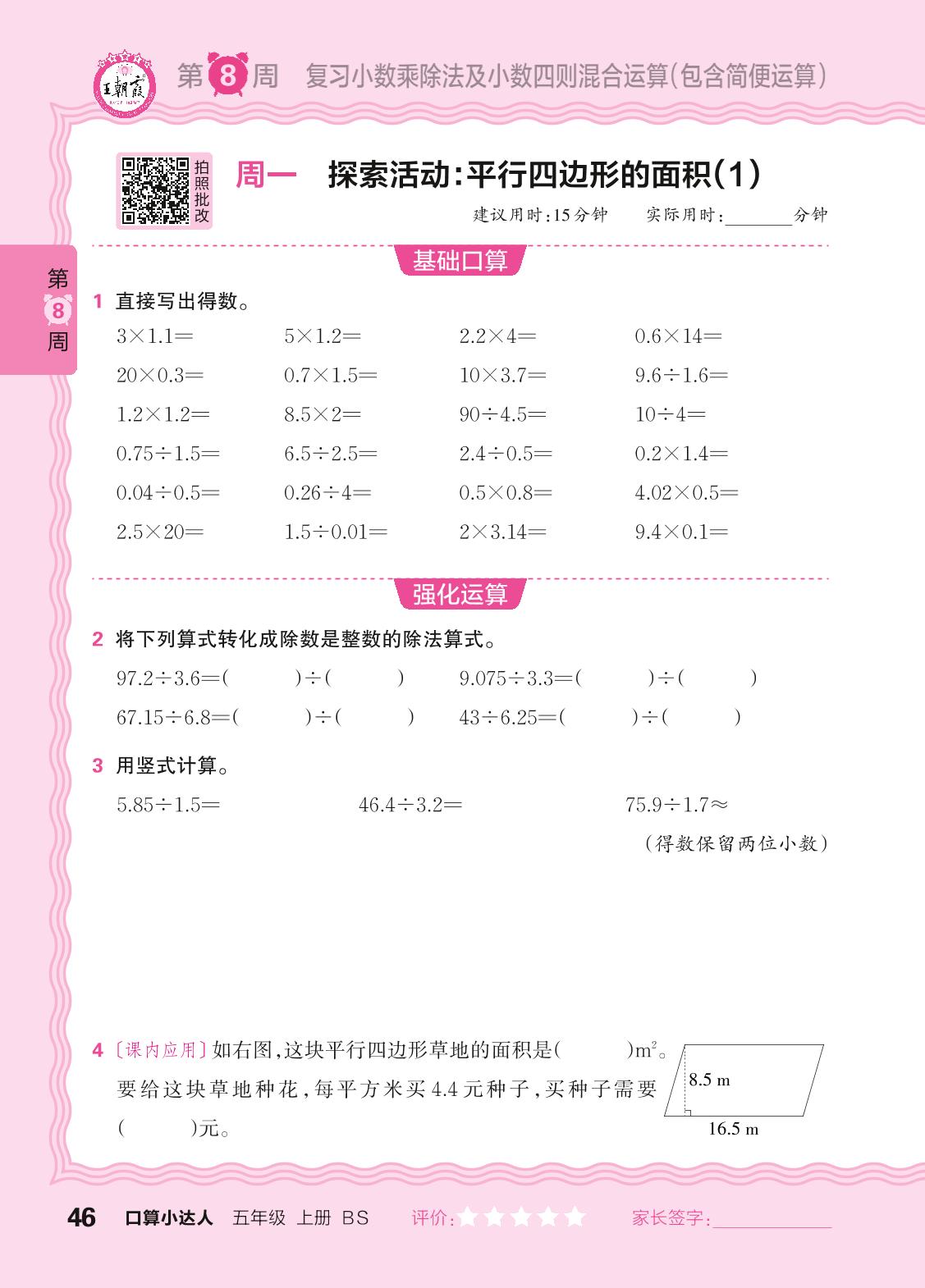 2024秋上册五年级数学北师版 口算计算专练 第8周