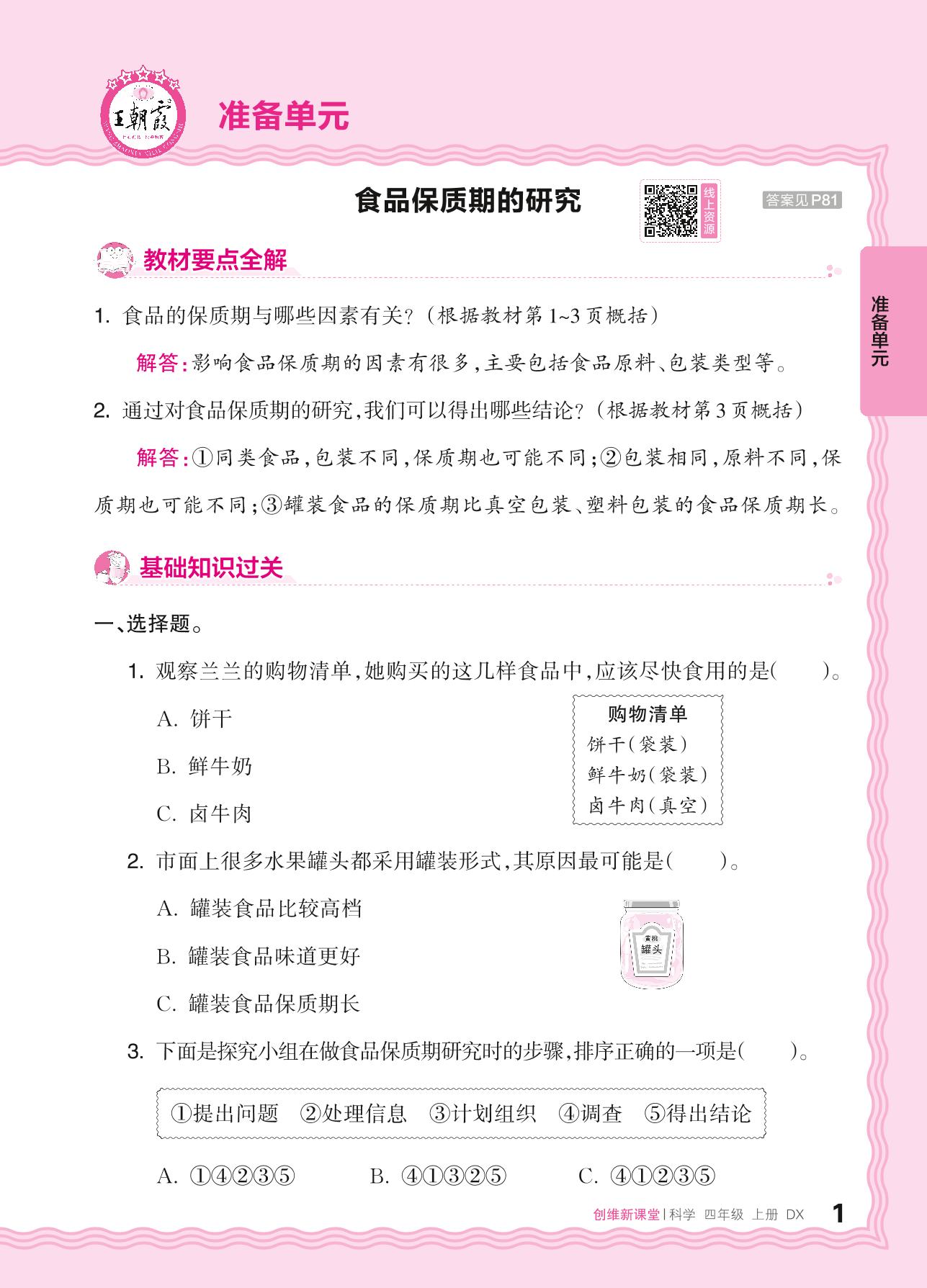 2024秋上册四年级科学大象版 准备单元——食品保质期的研究