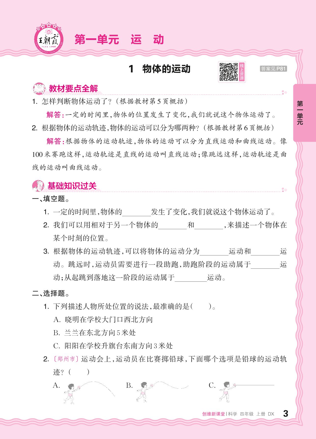 2024秋上册四年级科学大象版 第一单元 运动——1. 物体的运动