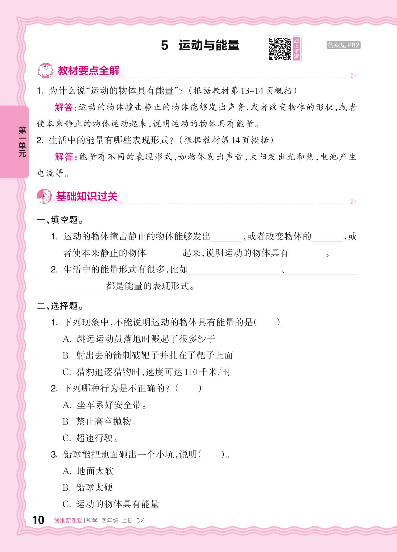 2024秋上册四年级科学大象版 第一单元 运动——5. 运动与能量