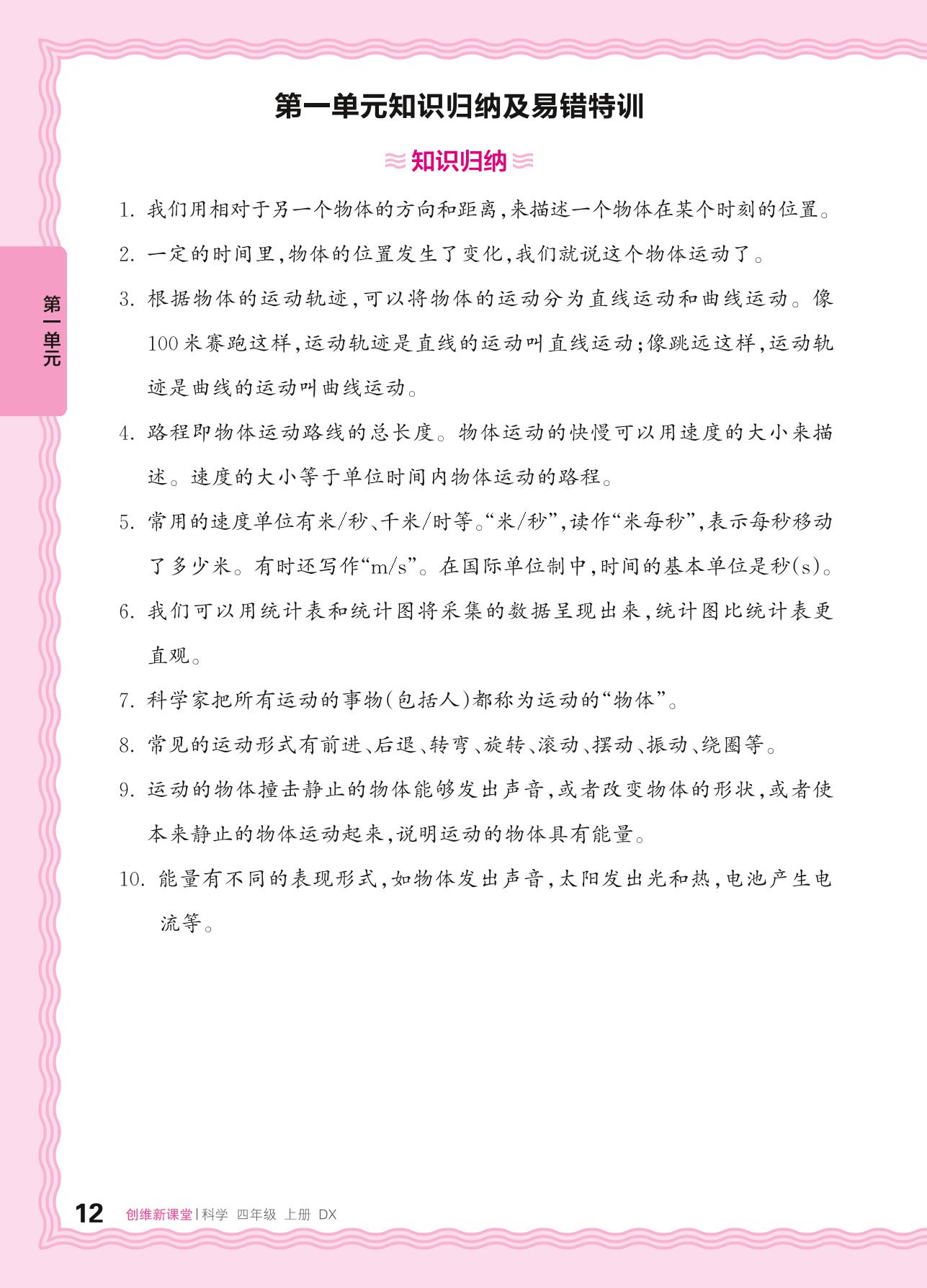 2024秋上册四年级科学大象版 第一单元知识归纳及易错特训_R240816110152118