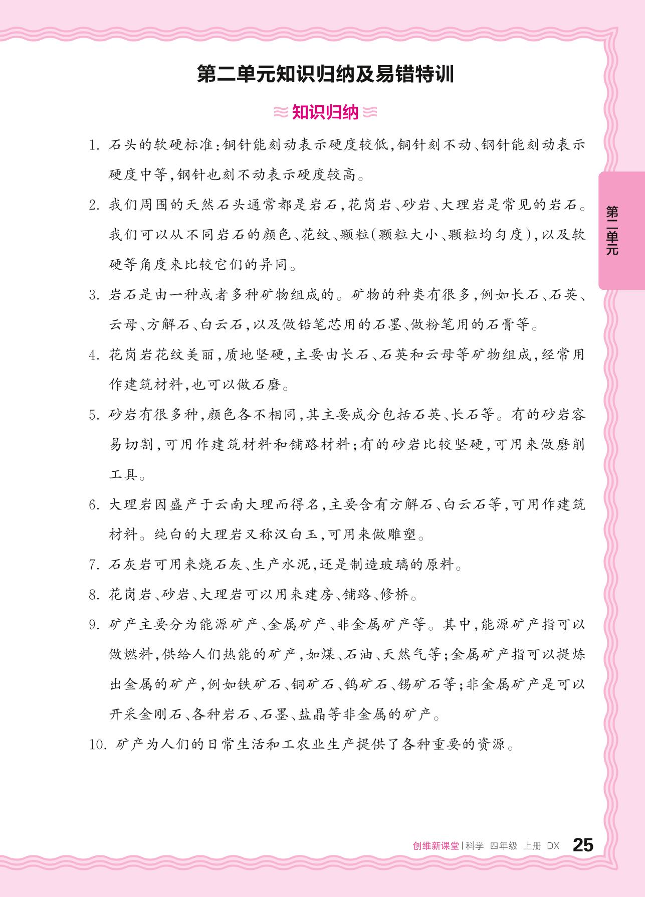 2024秋上册四年级科学大象版 第二单元知识归纳及易错特训_R240816110154354