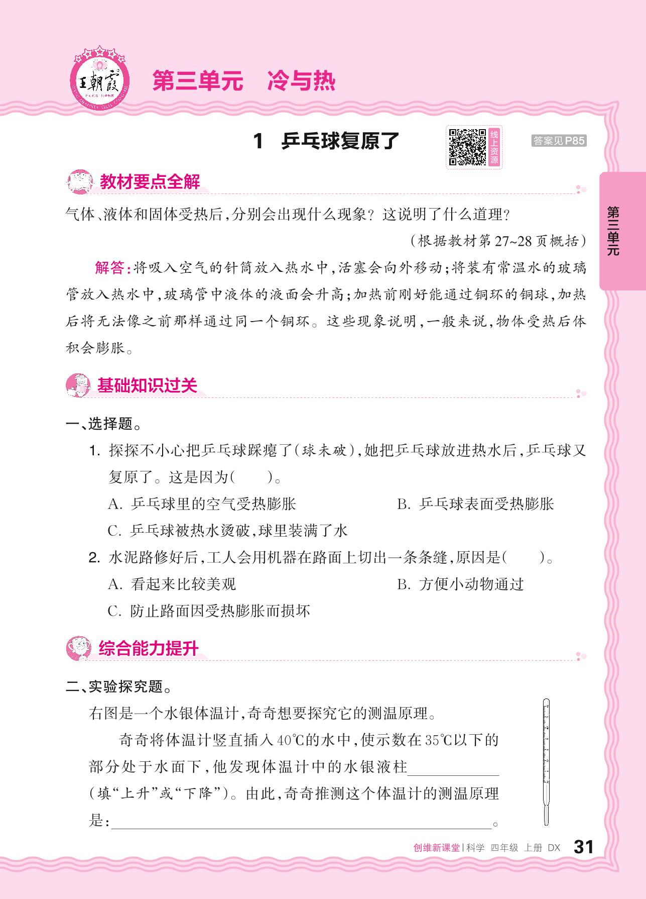 2024秋上册四年级科学大象版 第三单元 冷与热——1. 乒乓球复原了