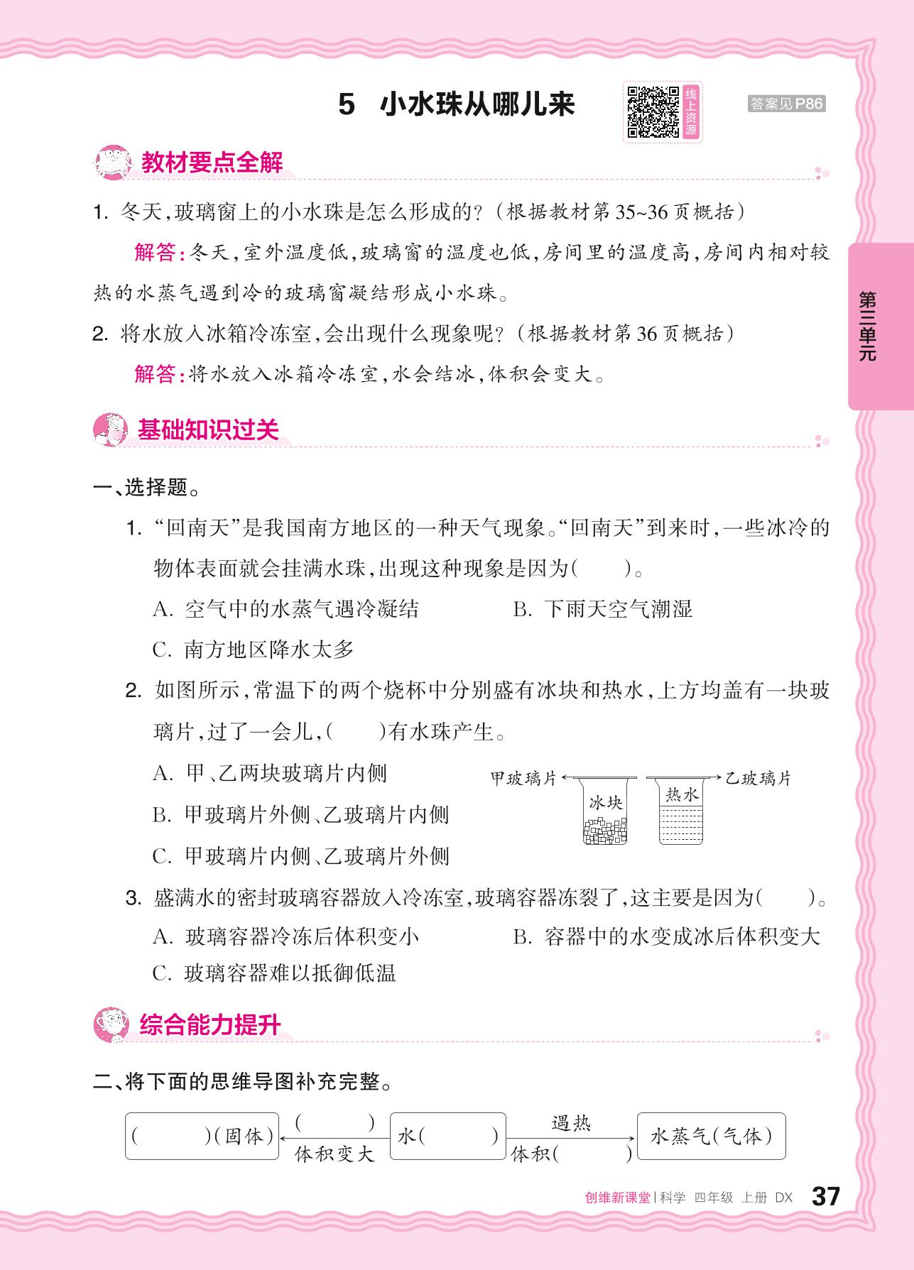 2024秋上册四年级科学大象版 第三单元 冷与热——5. 小水珠从哪儿来