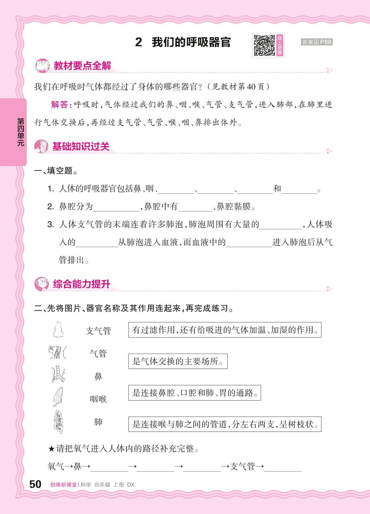 2024秋上册四年级科学大象版 第四单元 人体的呼吸器官——2. 我们的呼吸器官