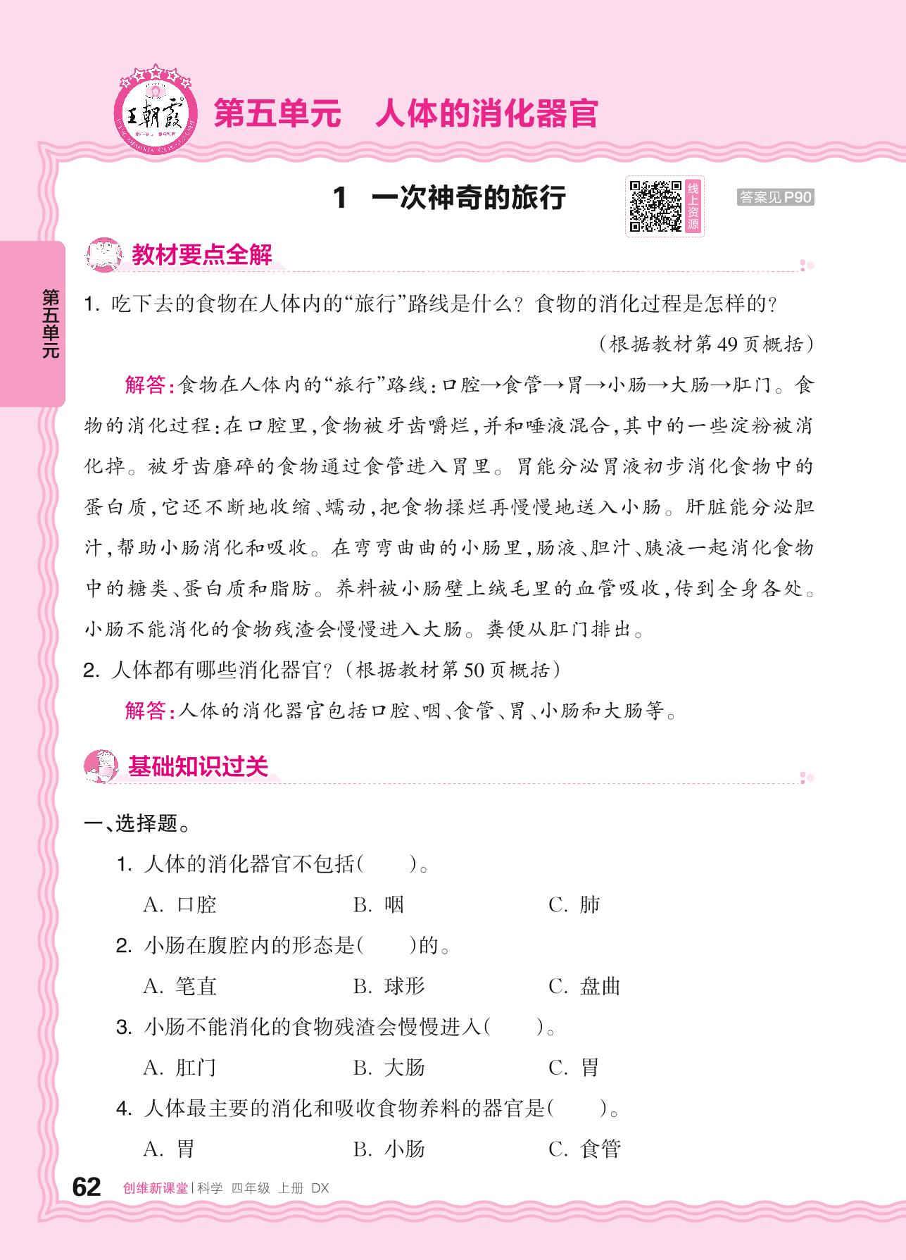 2024秋上册四年级科学大象版 第五单元 人体的消化器官——1. 一次神奇的旅行