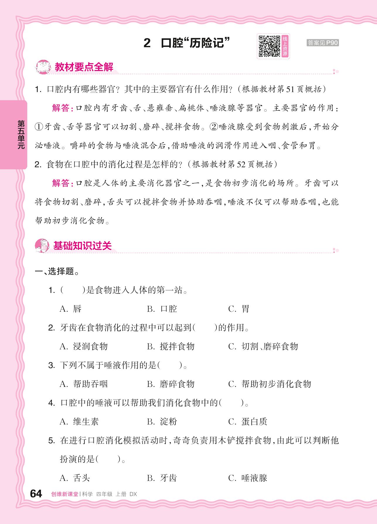 2024秋上册四年级科学大象版 第五单元 人体的消化器官——2. 口腔“历险记”