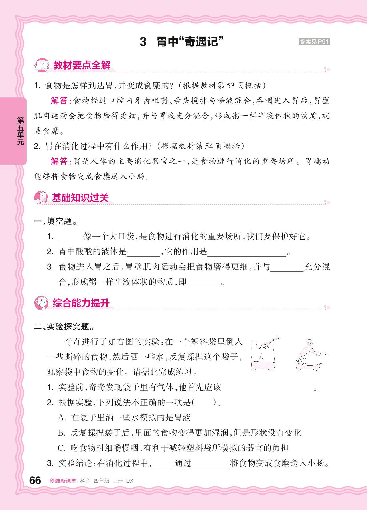 2024秋上册四年级科学大象版 第五单元 人体的消化器官——3. 胃中“奇遇记”